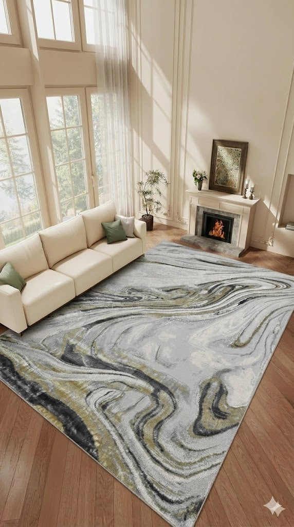 Alfombra Marmol 4D Gris / Dorado – Estilo Moderno con Patrón Geométrico y Toque Luxury