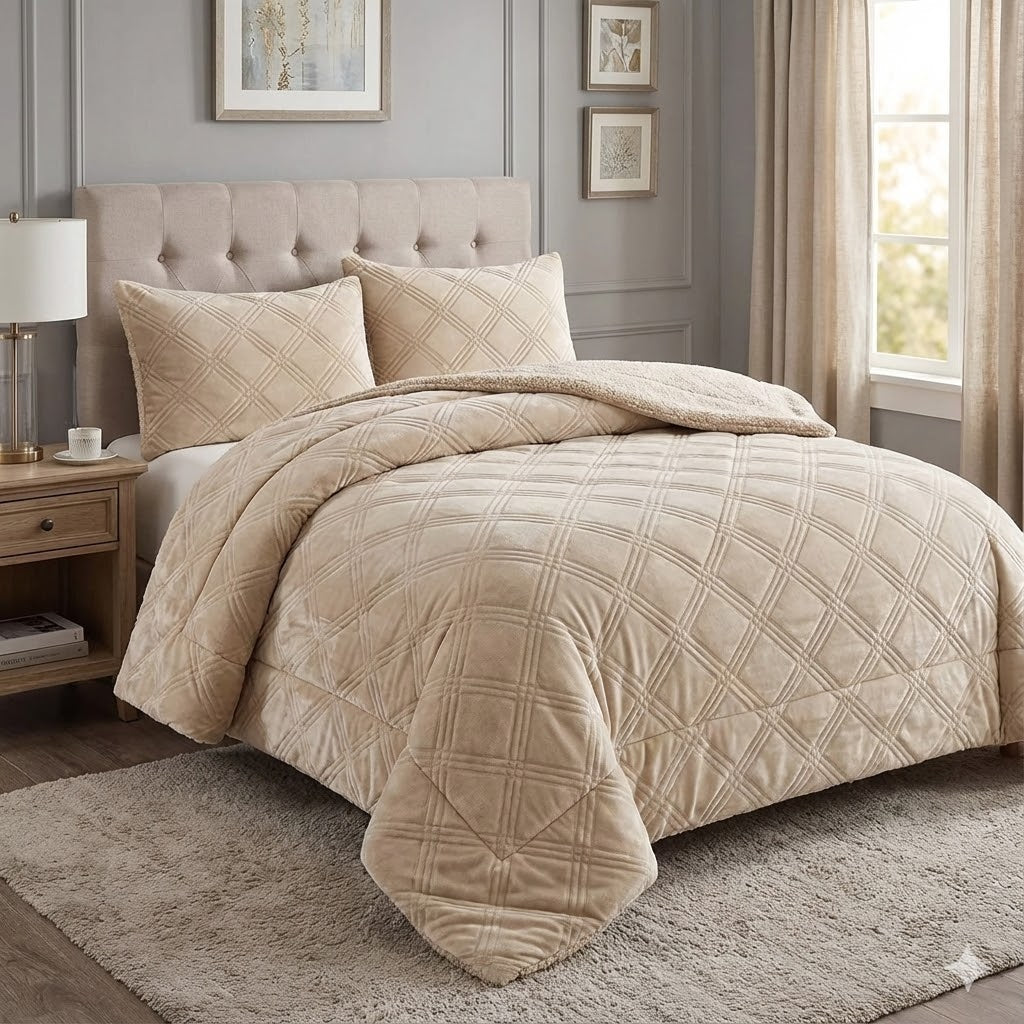 COLCHA DE PELE DE CARNEIRO NÓRDICA MODELO DIAMANTE - COR BEGE