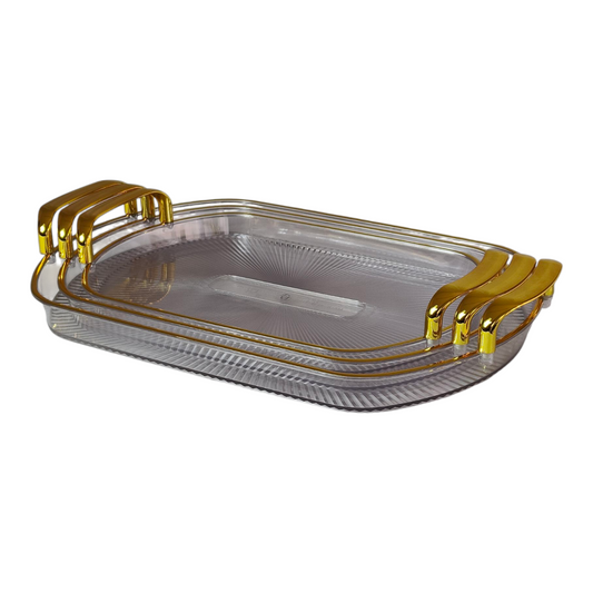 🍽️ Set de 3 Bandejas Rectangulares de Plástico con Asas Doradas — Elegancia y Versatilidad ✨