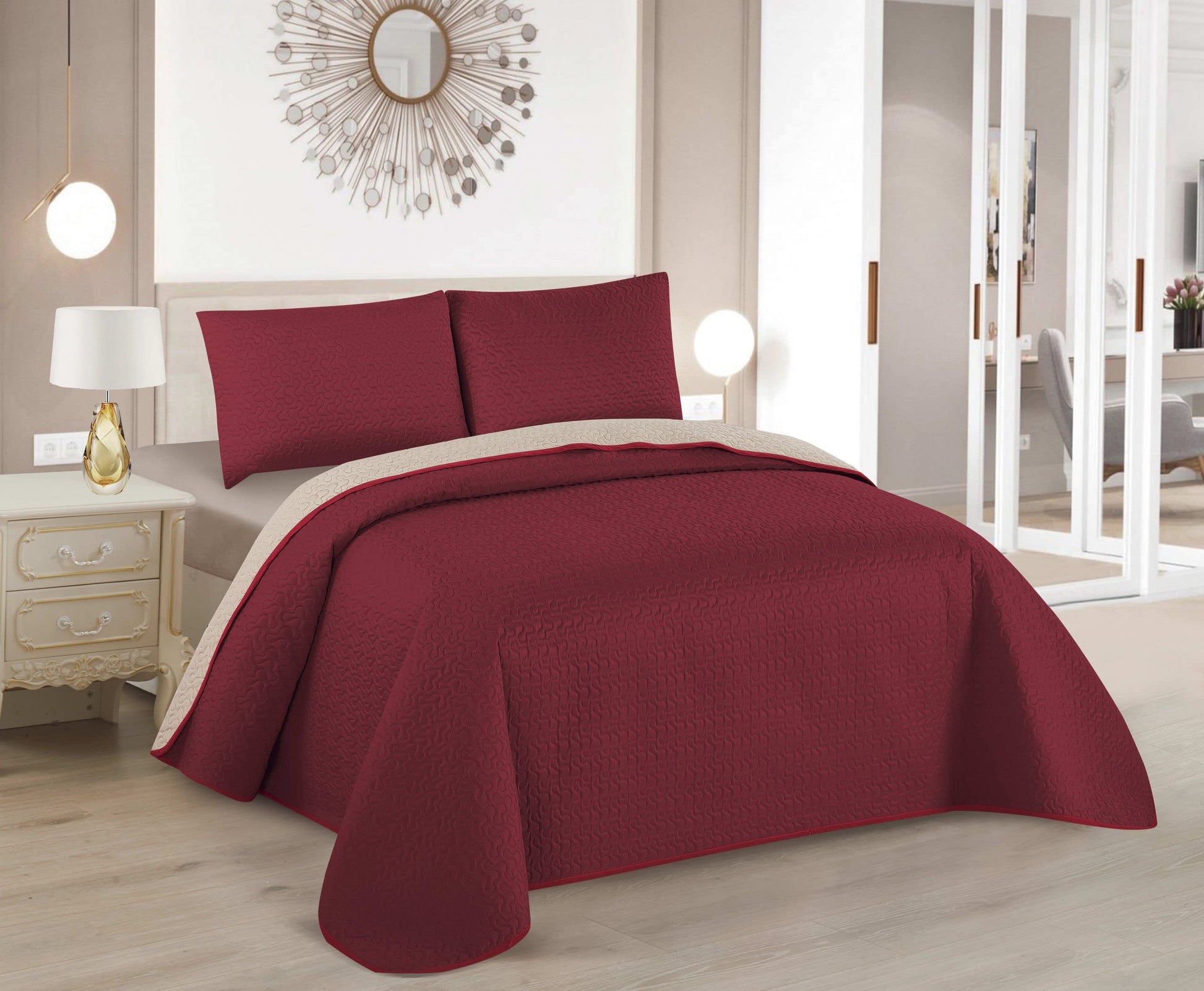 Boutis Quilt for Spring and Summer, Two-Tone Reversible Plain - RED COLOR
