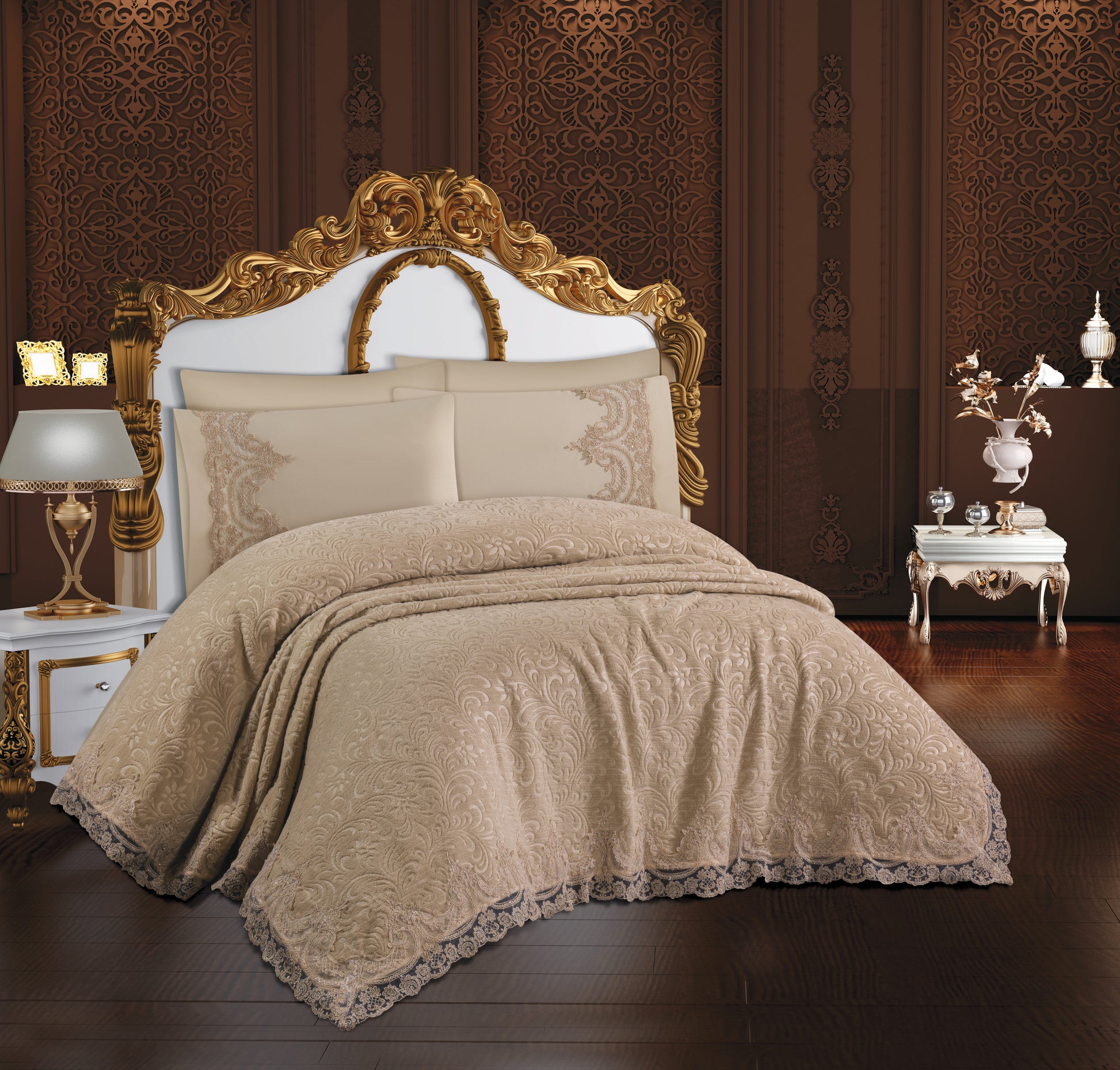 A Special Design was created by sewing Turkish Lace into the corners of the Blanket Skirts.