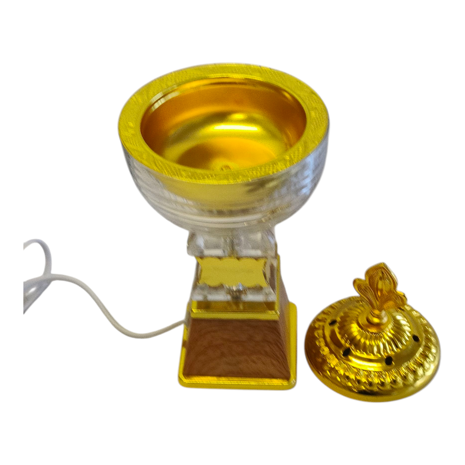 Quemador de Incienso Eléctrico Dorado — Diseño de Lujo con Detalles Transparentes