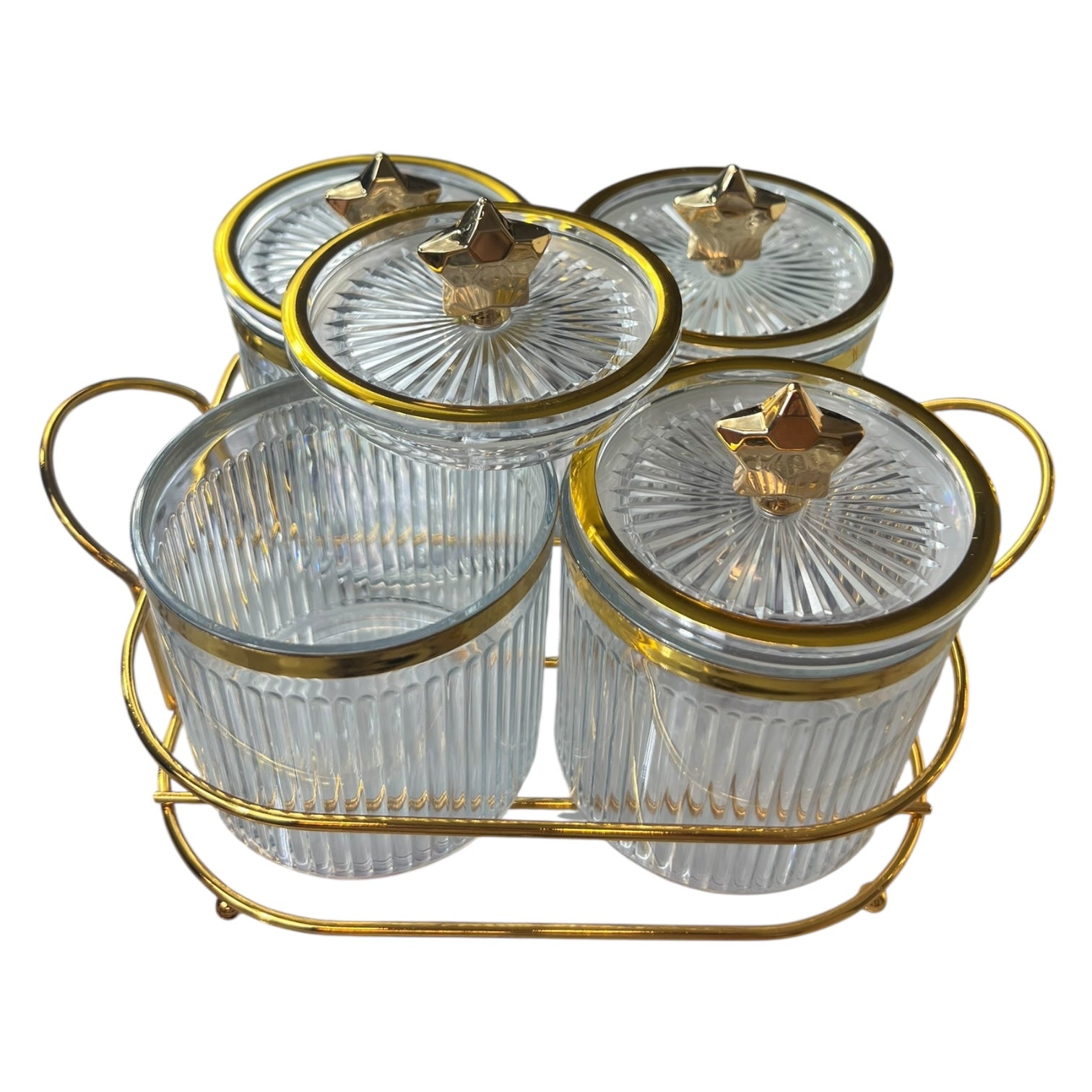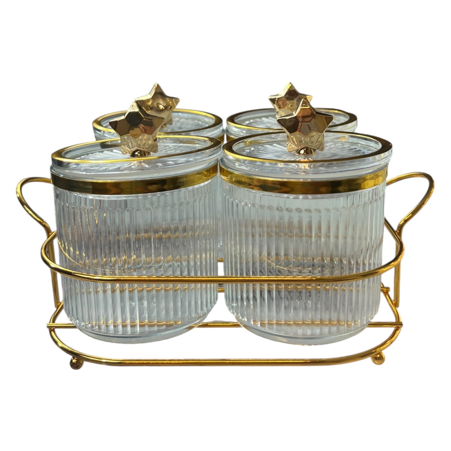 🌟 Set de 4 Tarros con Estrellas Doradas 🌟 - plástico TRANSPARENTE