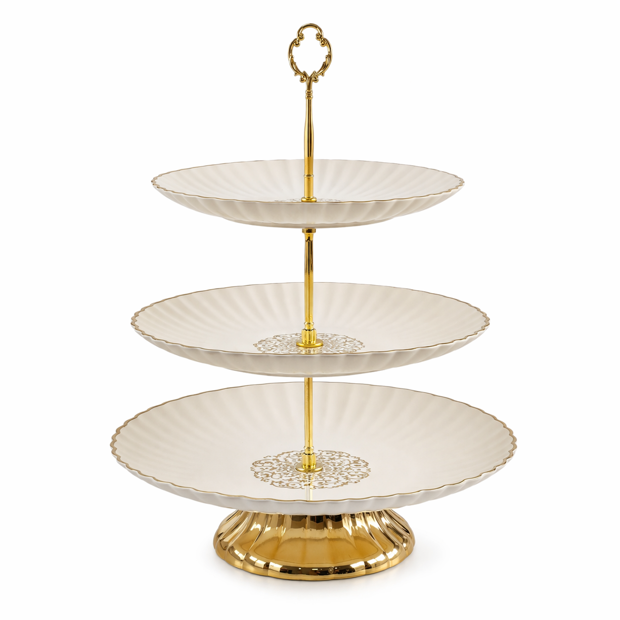 🍰 3-Tier Plastic Display Tray with Gold Details – Elegance for Your Table