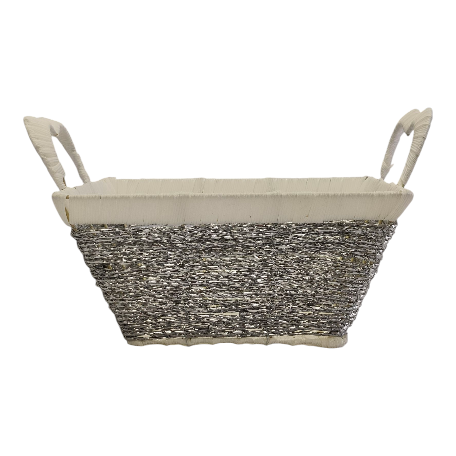 Woven Organizer Basket with Handles — Rectangular Silver/Beige