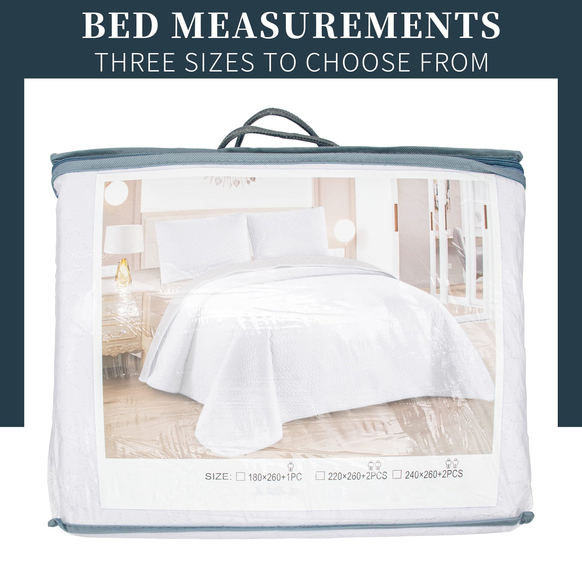 Boutis Quilt for Spring and Summer, Two-Tone Reversible Plain - WHITE