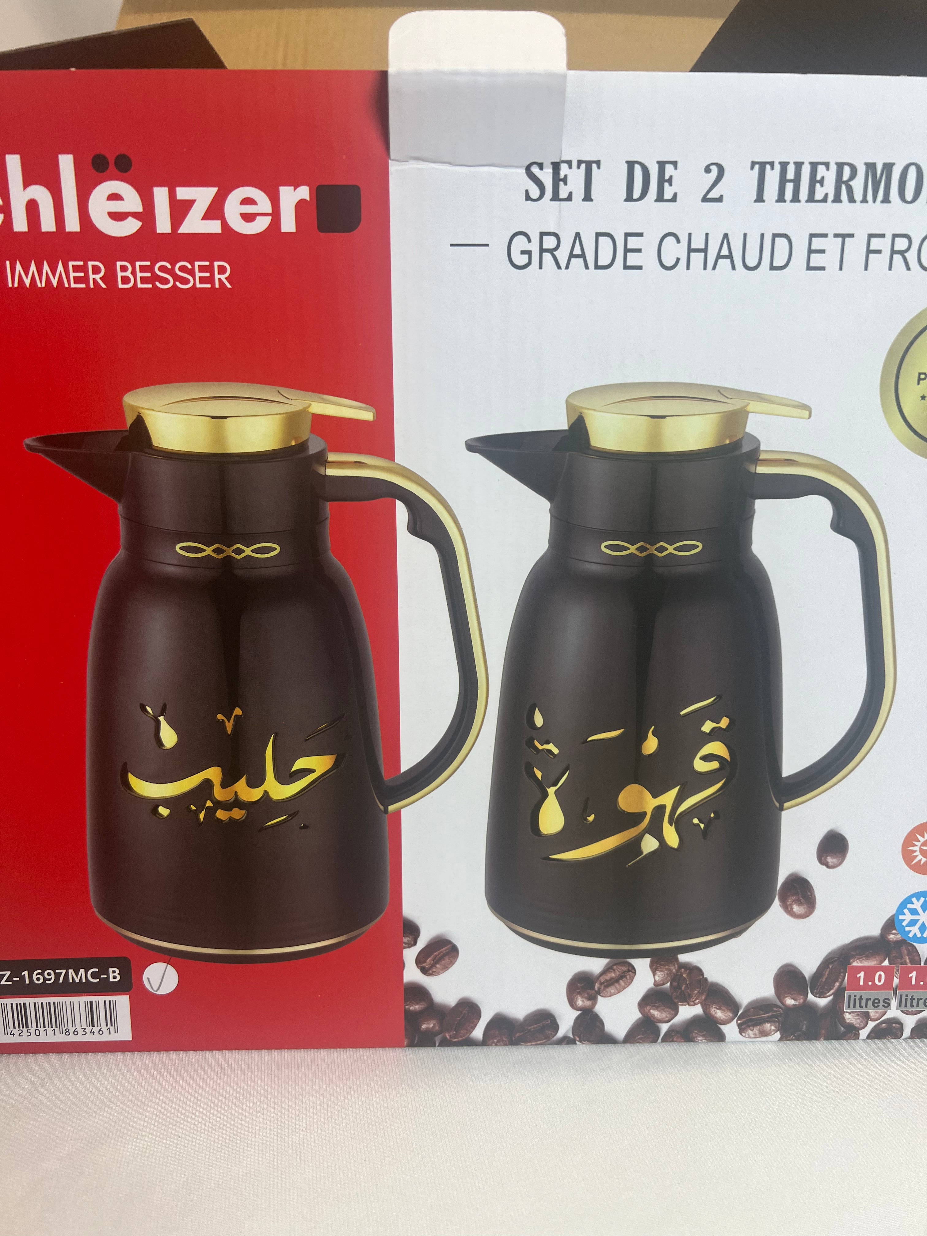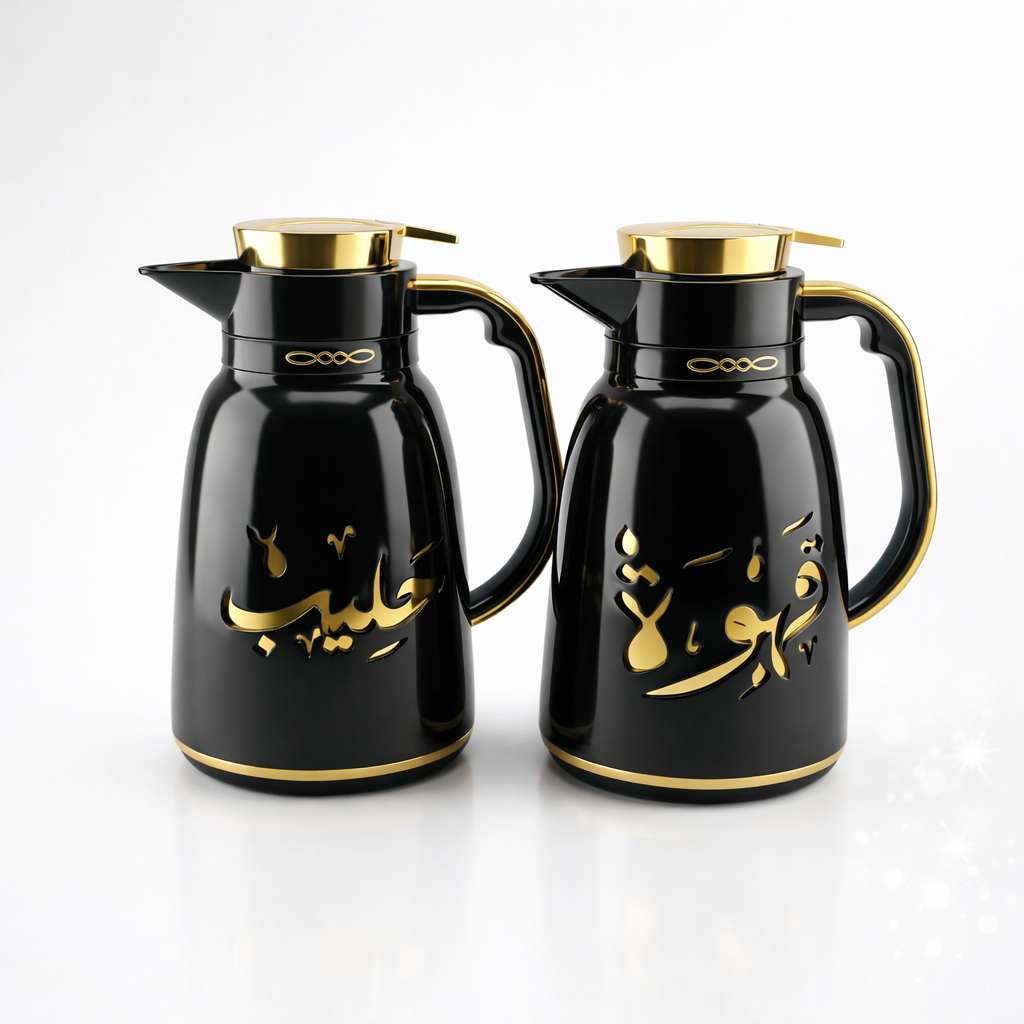 Set of 2 jug-type thermoses (Black + Gold) ✨