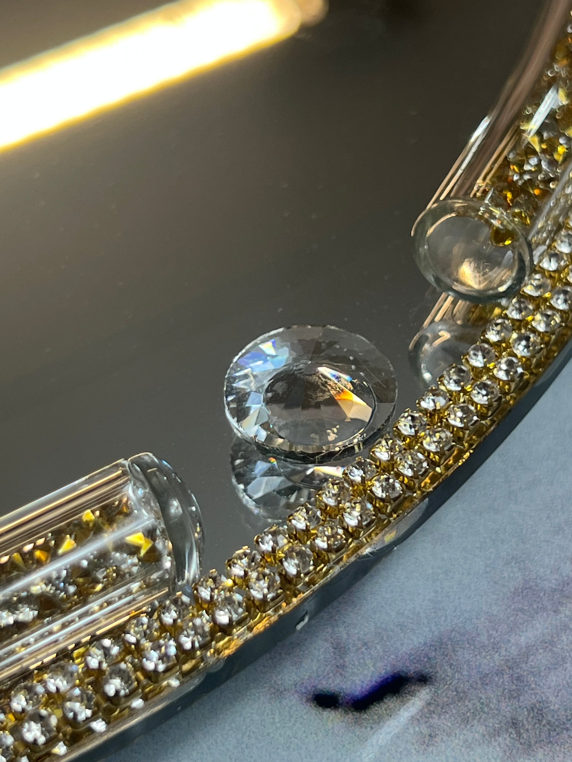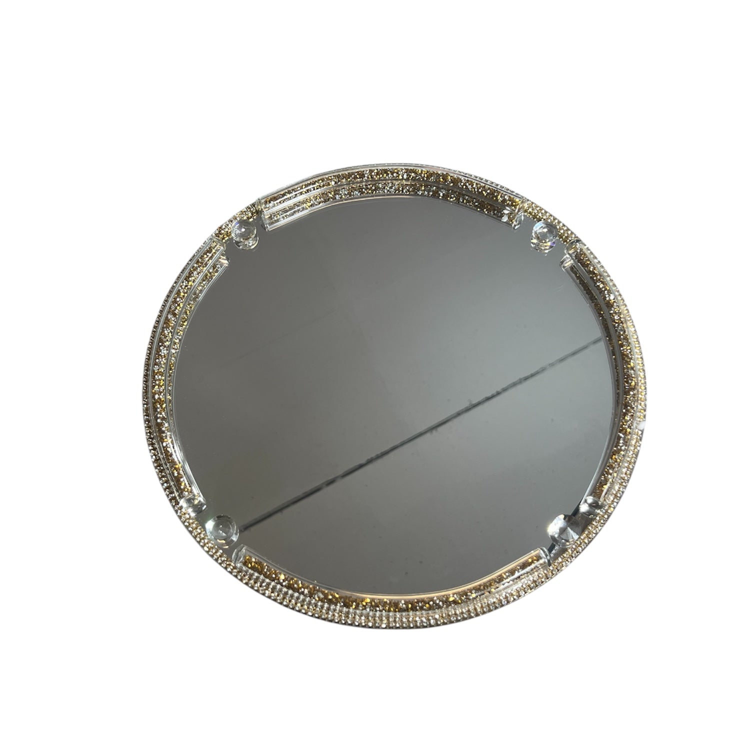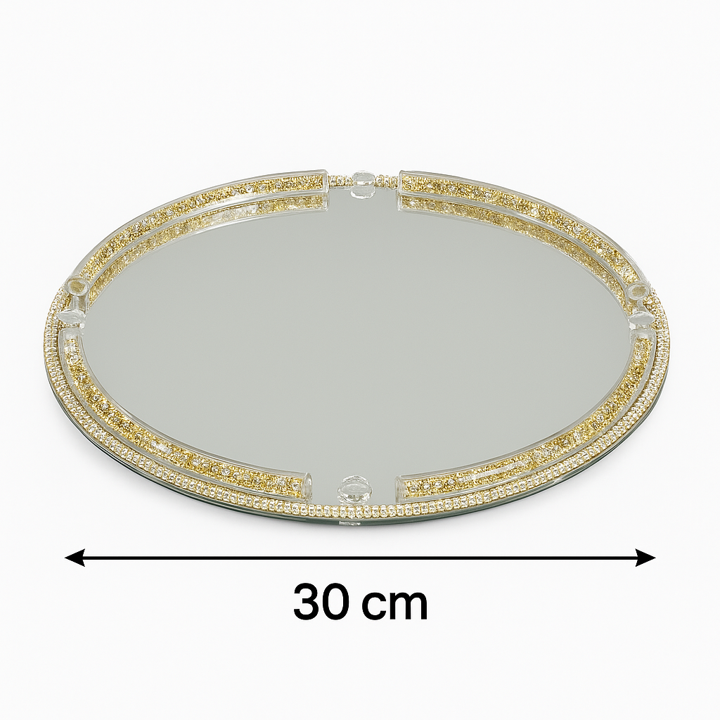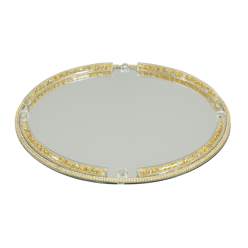 🪞 Bandeja Espejo de Cristal con Borde Dorado y Brillantes