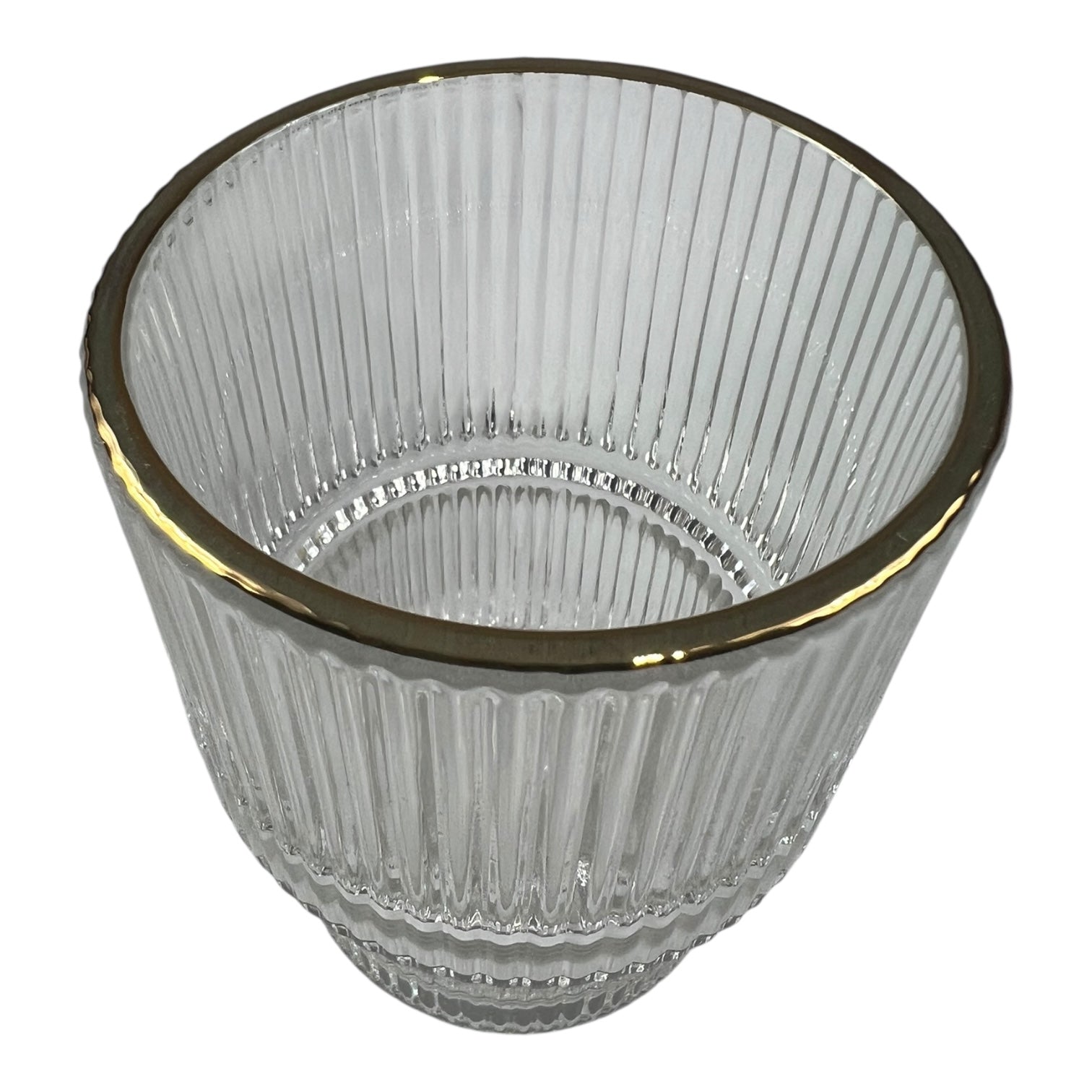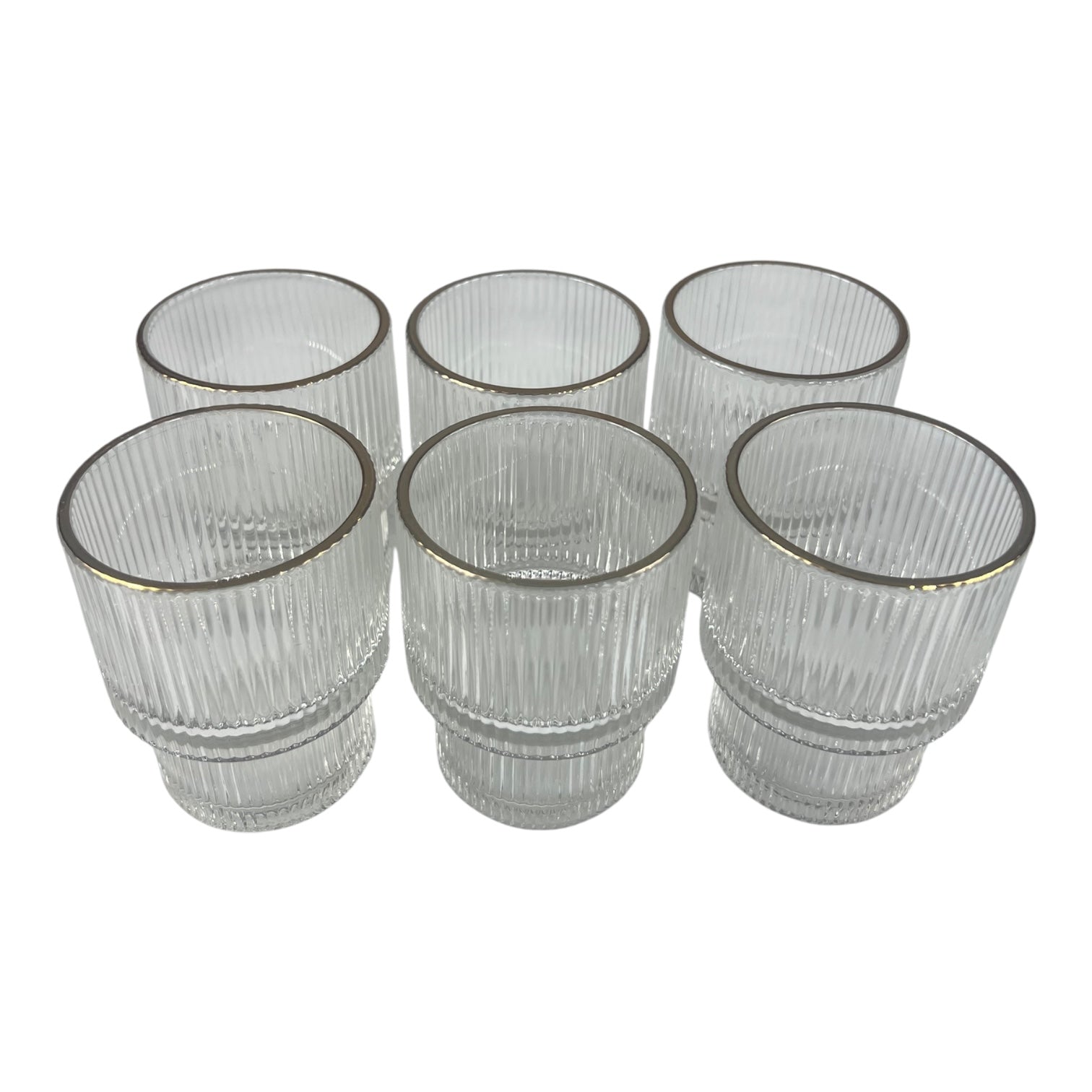 🥃 Set de 6 Vasos de Vidrio con Diseño Acanalado y Bordes Dorados– Elegancia para tu Mesa
