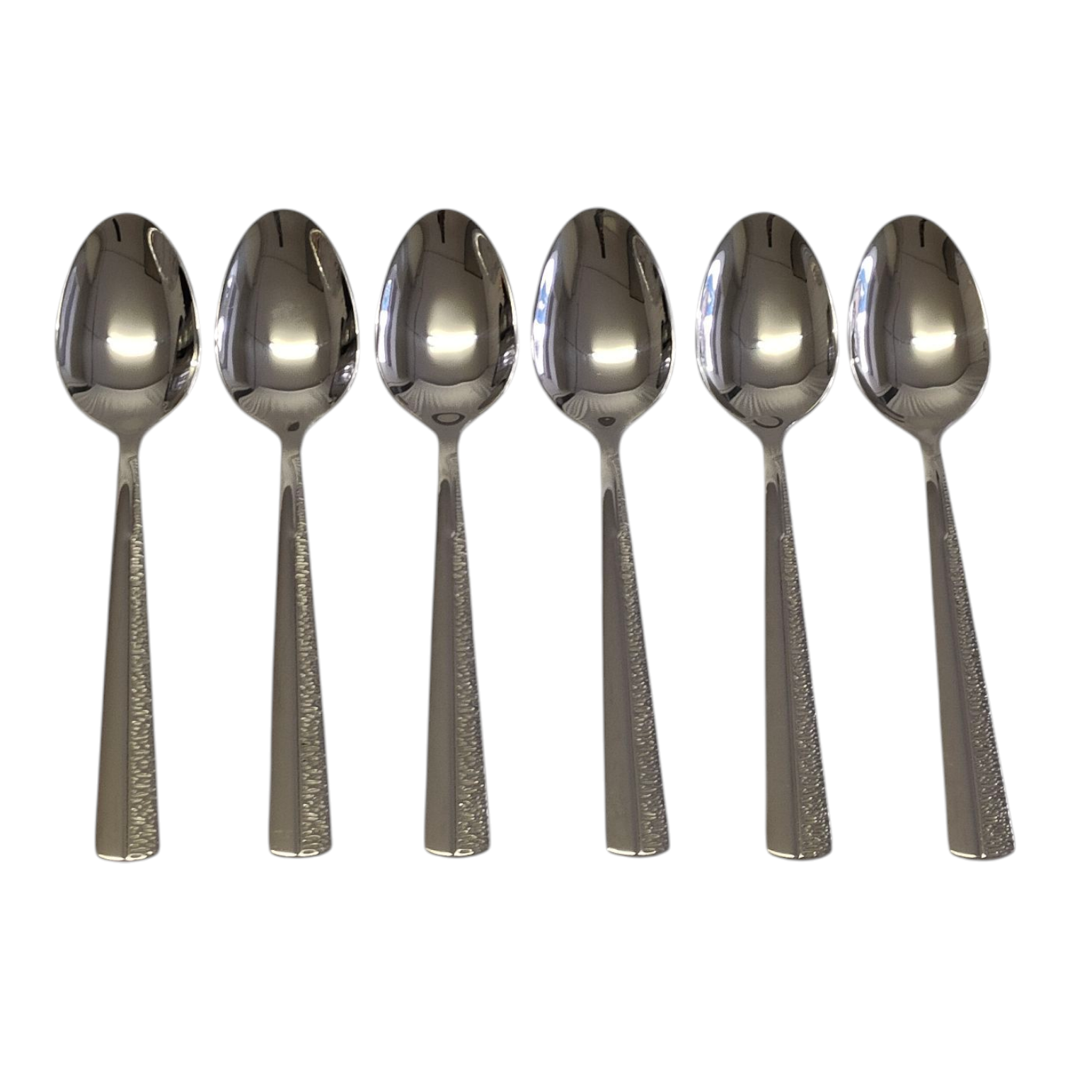 Set de 6 Cucharas de Postre – Acero Inoxidable con Mango Texturizado | Acabado Espejo