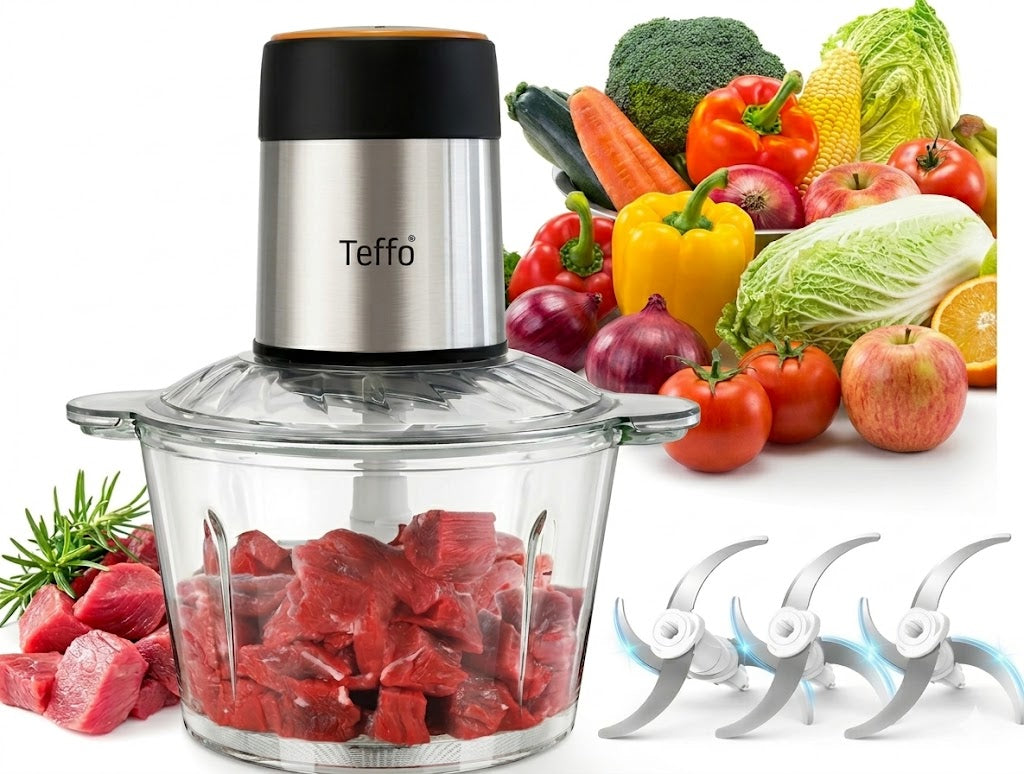Teffo Electric Food Chopper – Glass Bowl, Double Blade and High Power Motor