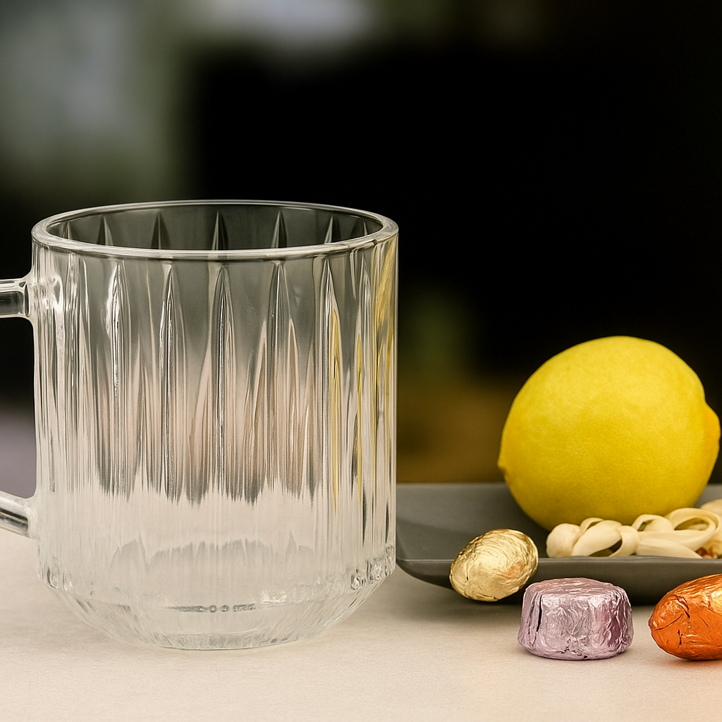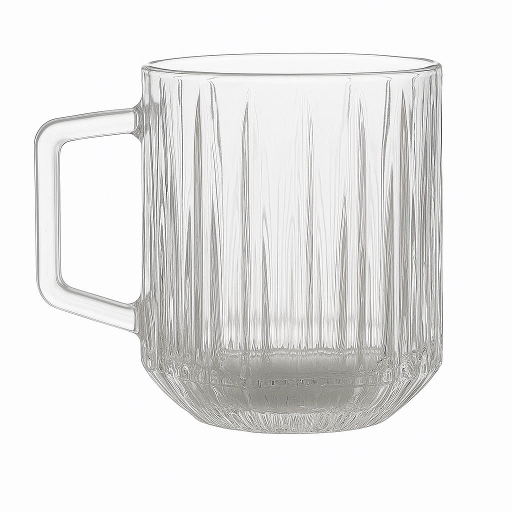 Descubre este set de 6 vasos de cristal con un elegante diseño facetado, ideales para realzar la presentación de cualquier bebida. Cada vaso incluye un asa cómoda que facilita su uso, siendo perfecto tanto para bebidas frías como calientes, desde cafés e infusiones hasta zumos y refrescos.