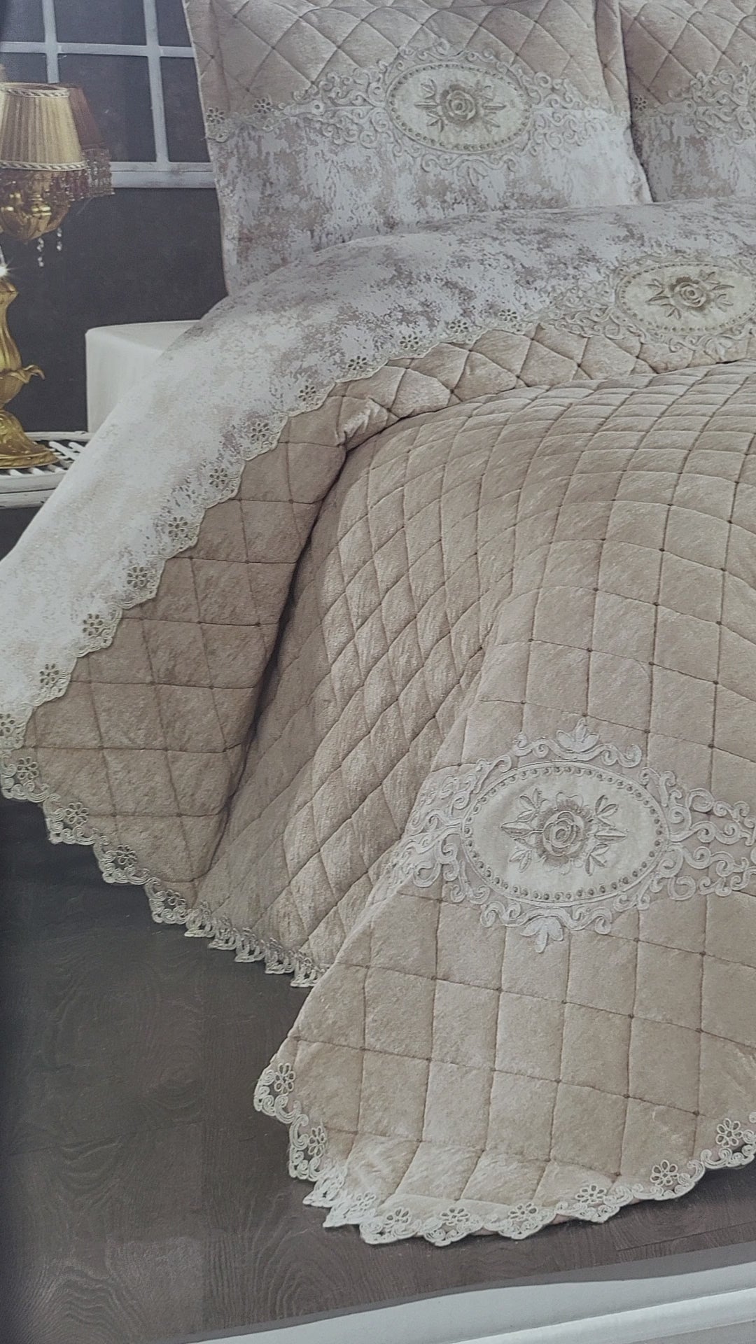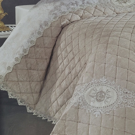 Marianna Luxury Bedding Set – Quilted Bedspread with Lace