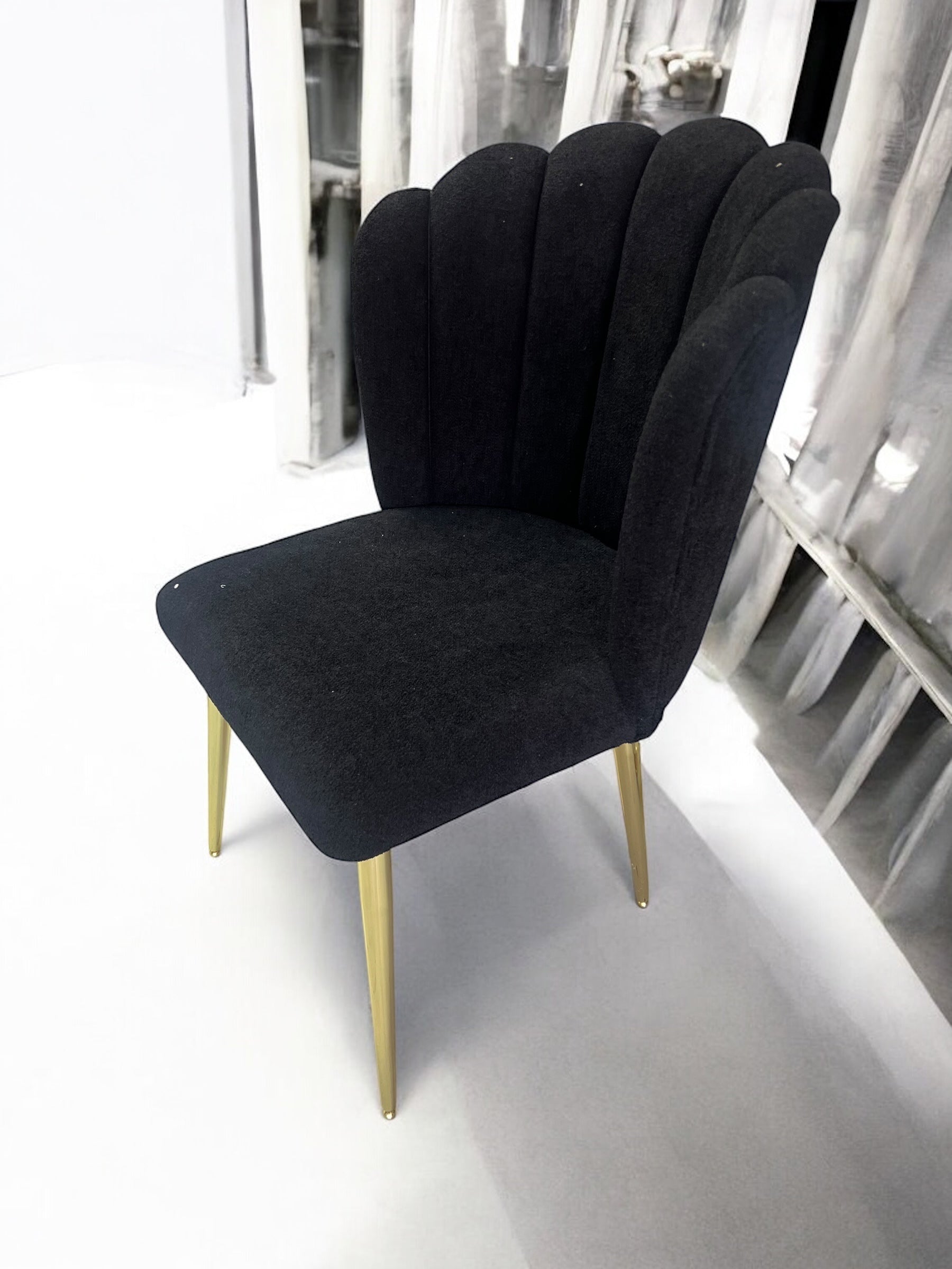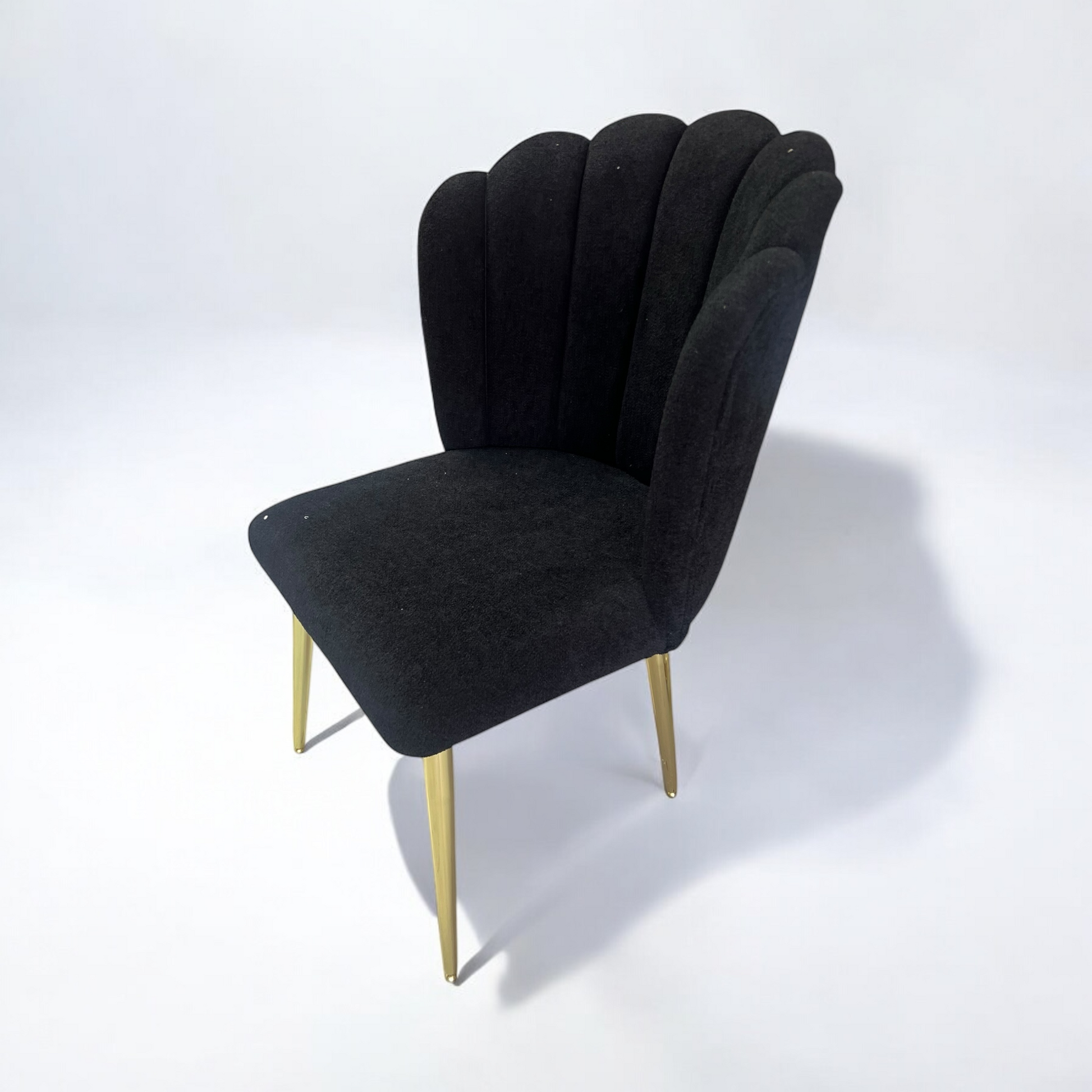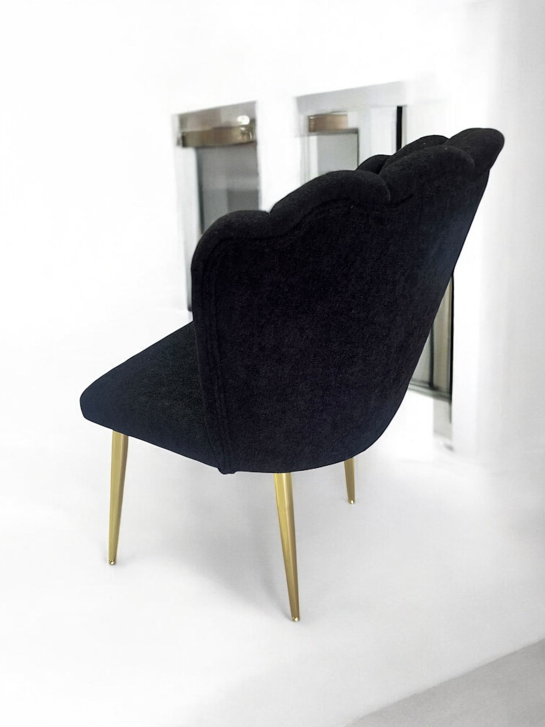 Silla tela bouclé PAPATYAV28 color negro, patas de metal dorado