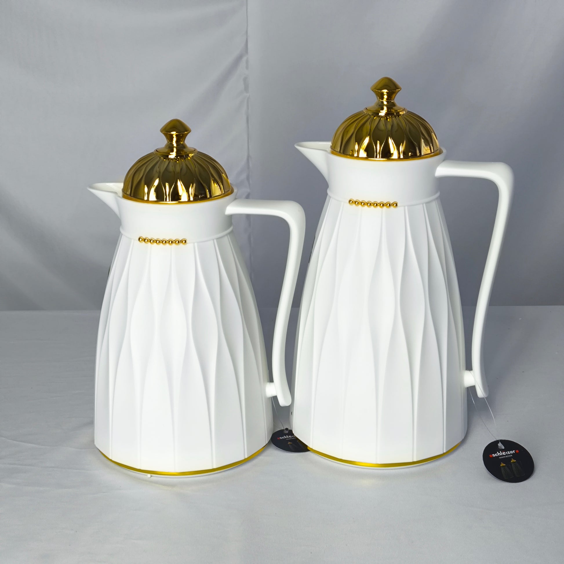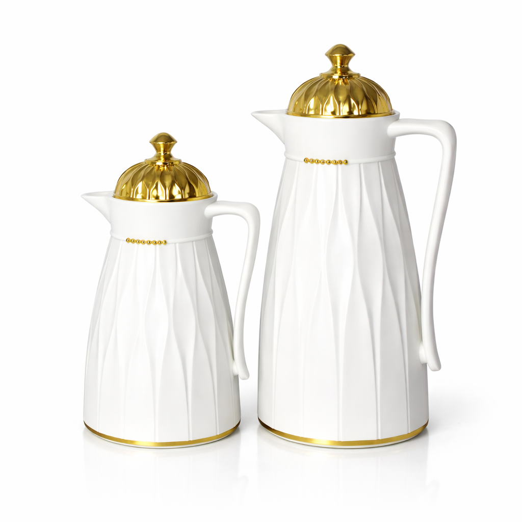 Juego de Jarras Térmicas Elegantes – Acabado Blanco con Tapa Dorada