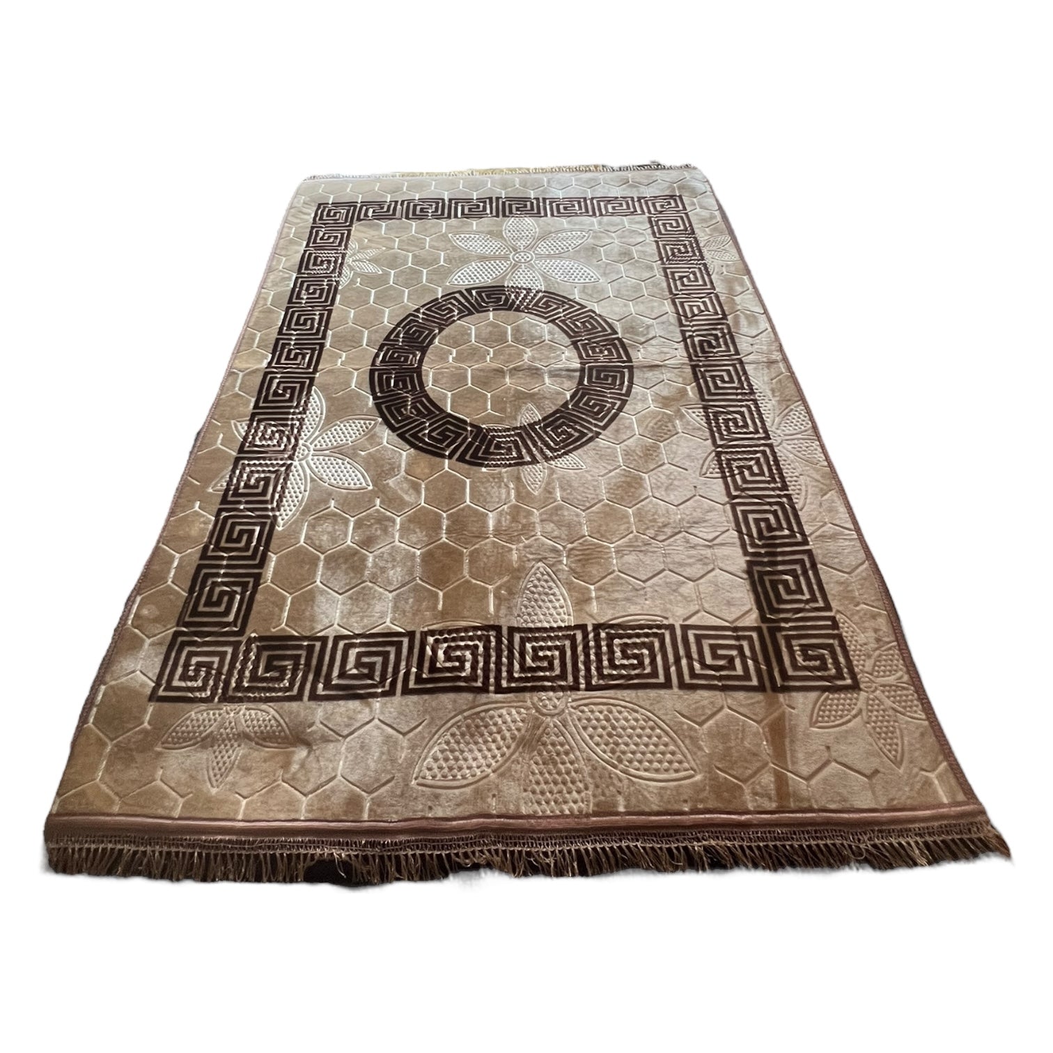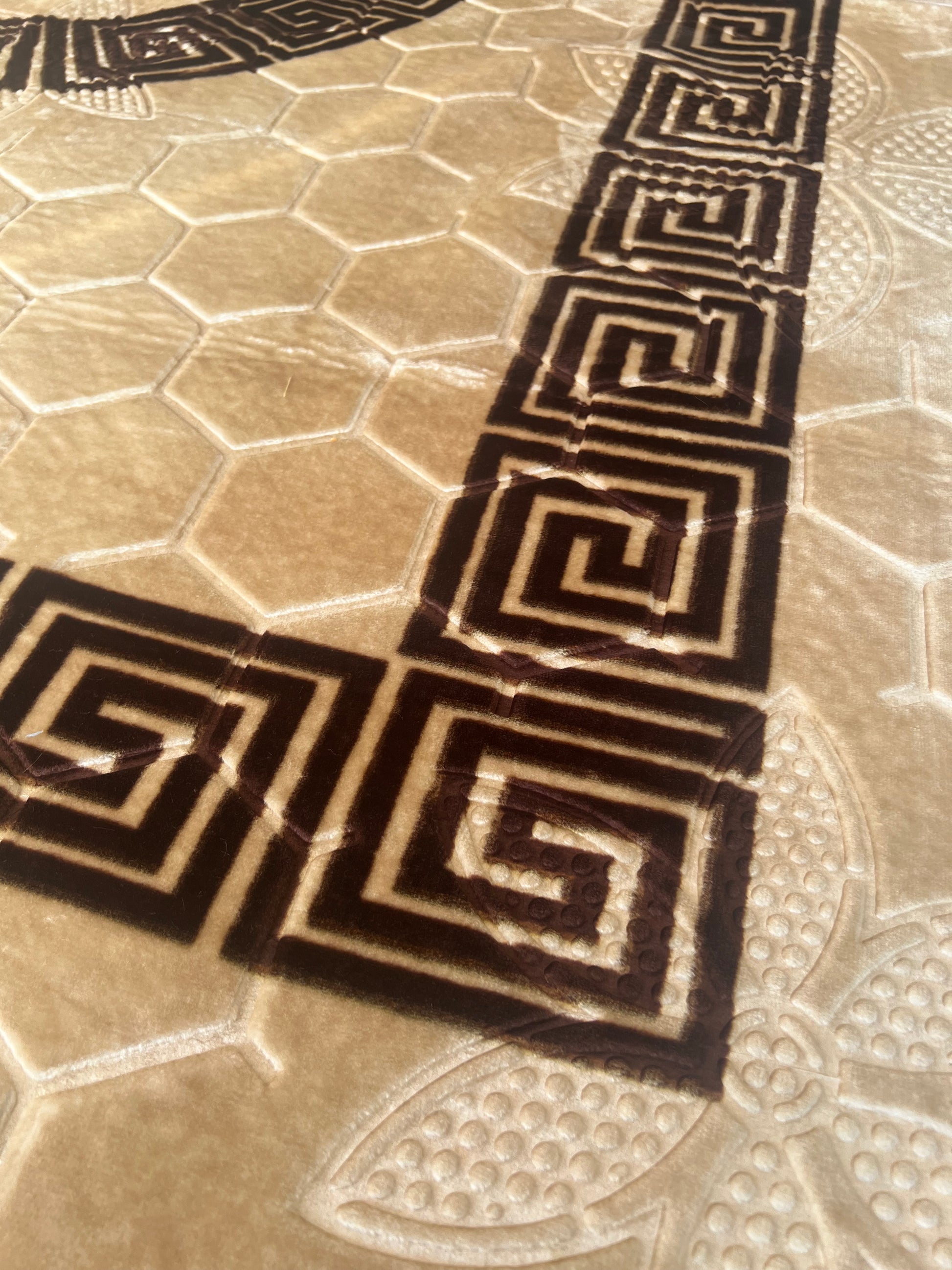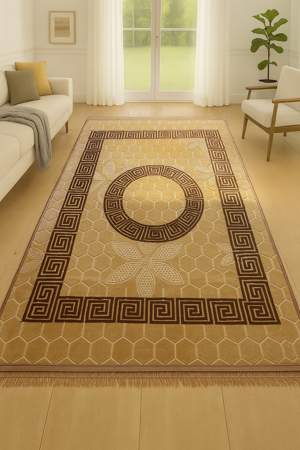 Alfombra Clásica Dorada con Cenefa Marrón de Inspiración Oriental – Estilo Árabe