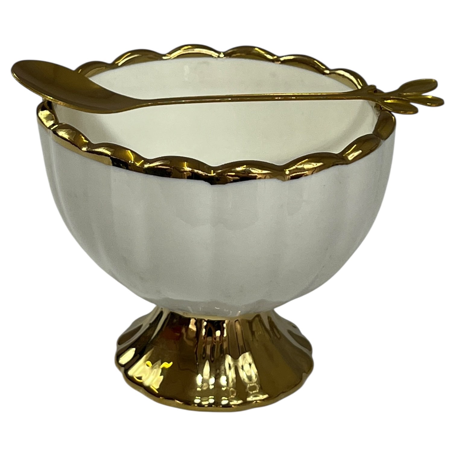 🍨 Sirve tus postres con elegancia y distinción con este set completo de 6 copas de porcelana blanca con detalles dorados, perfectas para helado, mousse, natillas o fruta fresca. Cada copa se apoya sobre una base dorada que aporta un toque sofisticado a tu mesa.