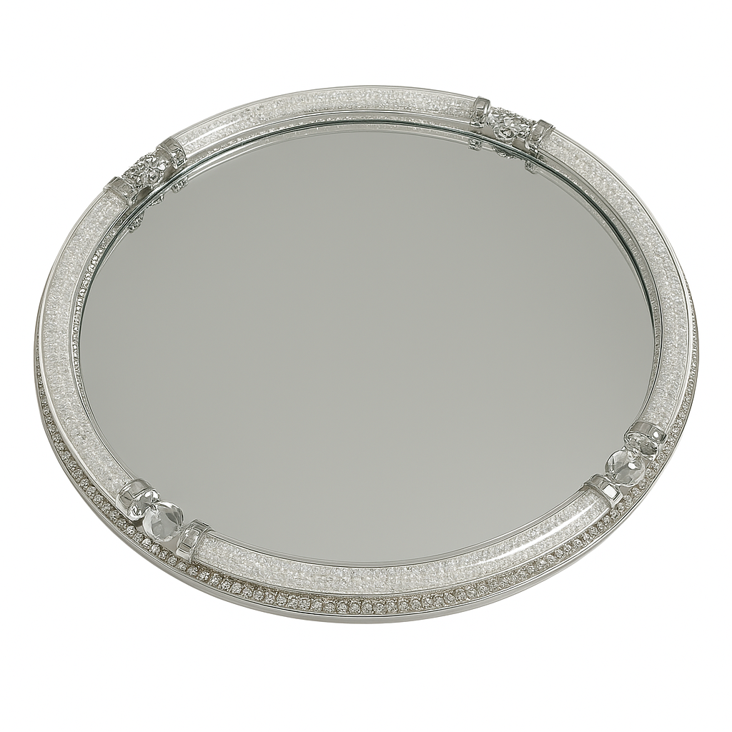 Bandeja Espejo Redonda con Detalles de Cristal Brillante – Diseño Elegante
