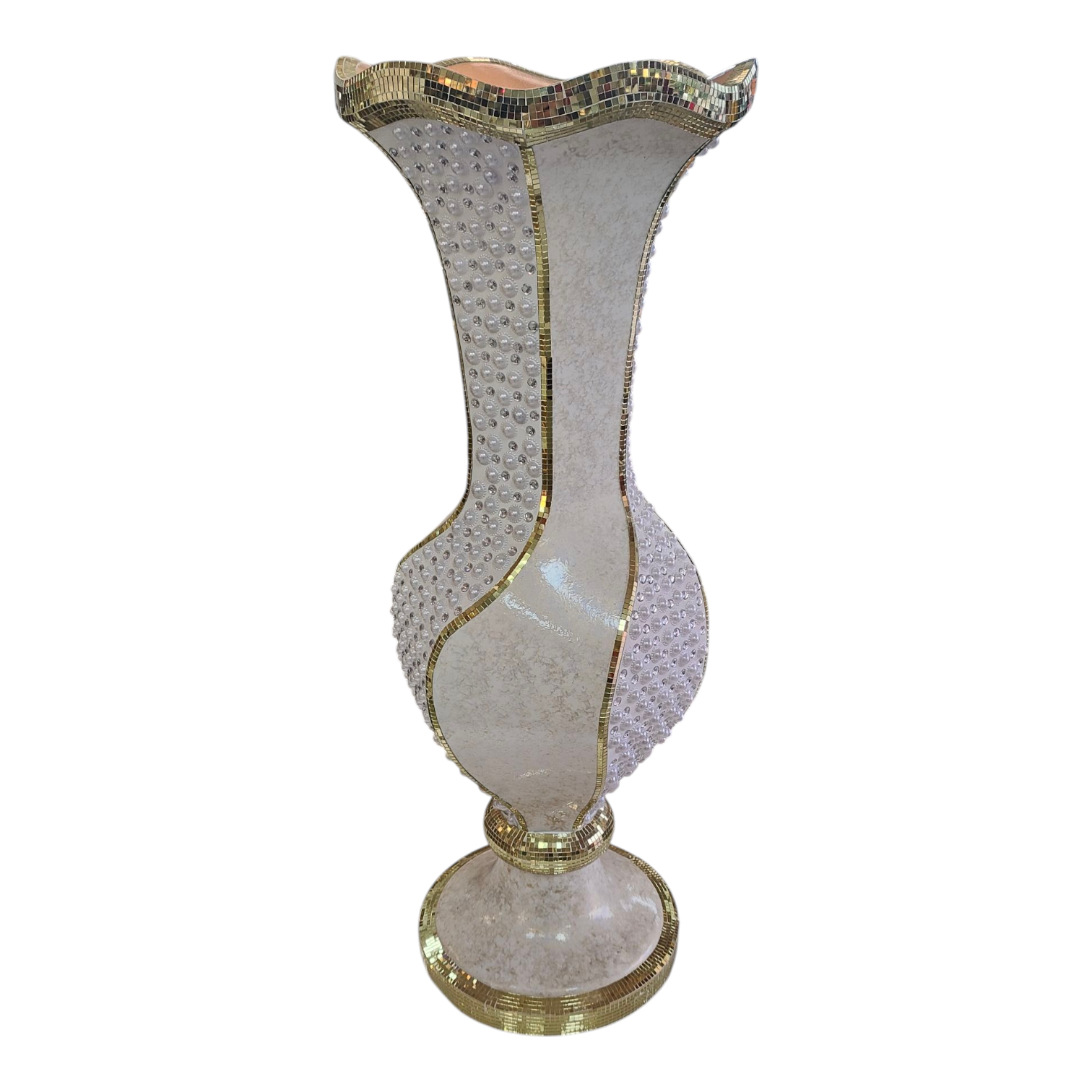 Jarrón de Lujo con Mosaicos Dorados y Detalles de Perlas – Decoración Clásica 81 cm