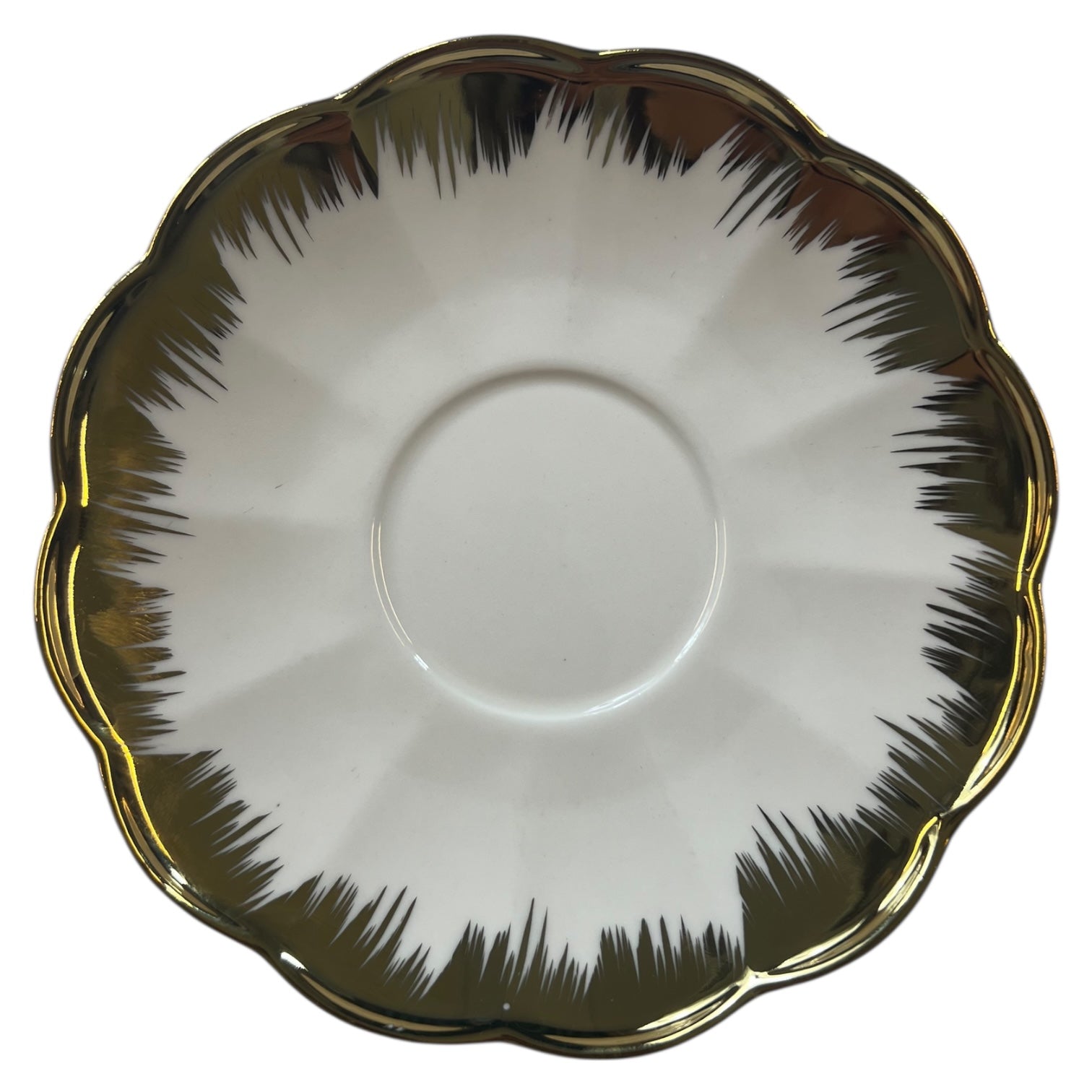 Platillos con borde ondulado y dorado que realzan su elegancia 🍽️