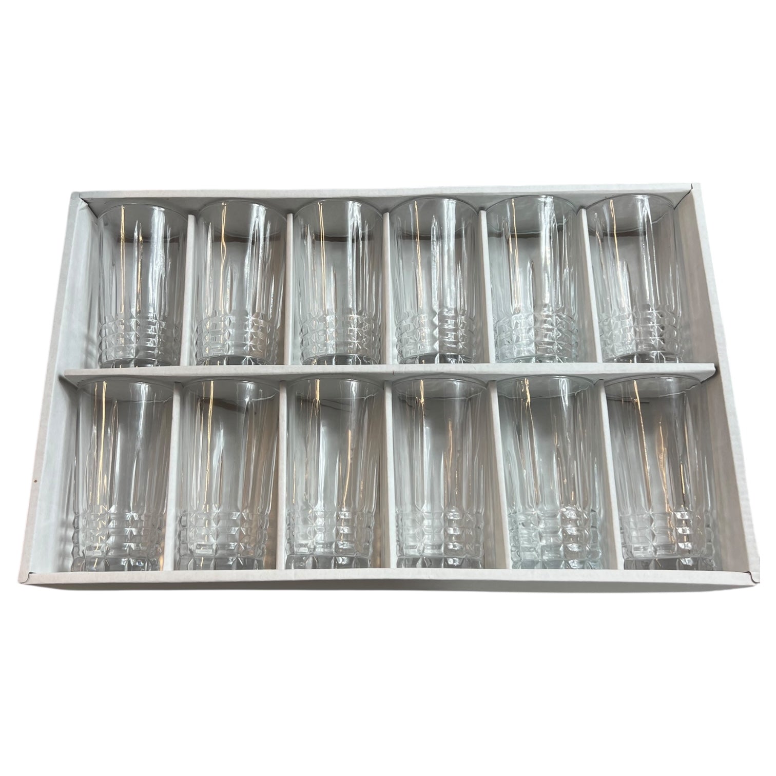 Este completo set de 12 vasos de cristal es perfecto para quienes buscan calidad, elegancia y practicidad en su mesa. Con un diseño tallado que aporta un aire sofisticado y atemporal, estos vasos se adaptan a todo tipo de bebidas, desde agua hasta refrescos o cócteles.