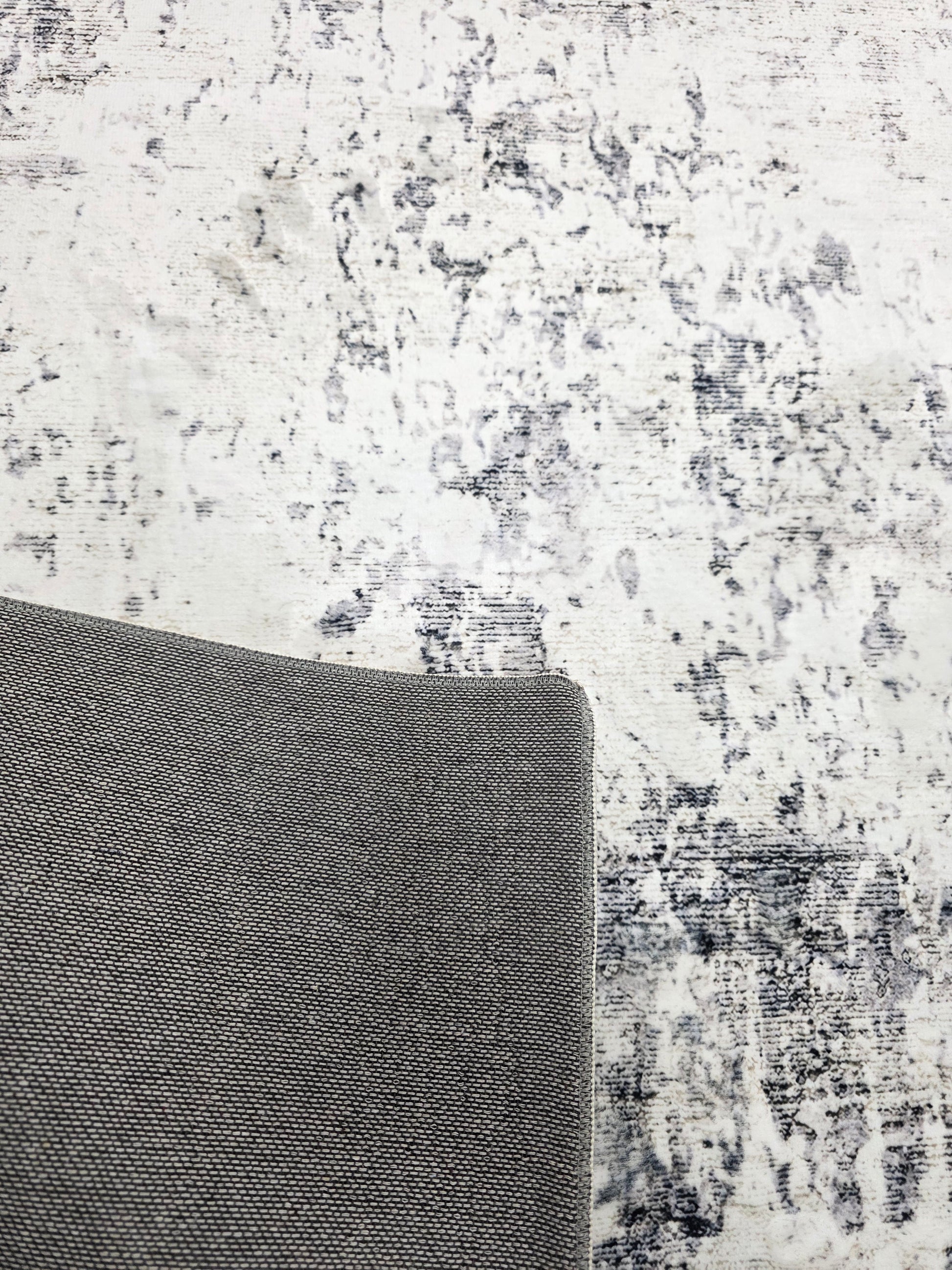Alfombra de estilo abstracto con efecto marmolado en grises suaves sobre fondo claro. Aporta luminosidad y textura sin recargar el espacio, ideal para salones, comedores o despachos que buscan un toque sofisticado y actual. Disponible en 160×230 cm y 200×280 cm.