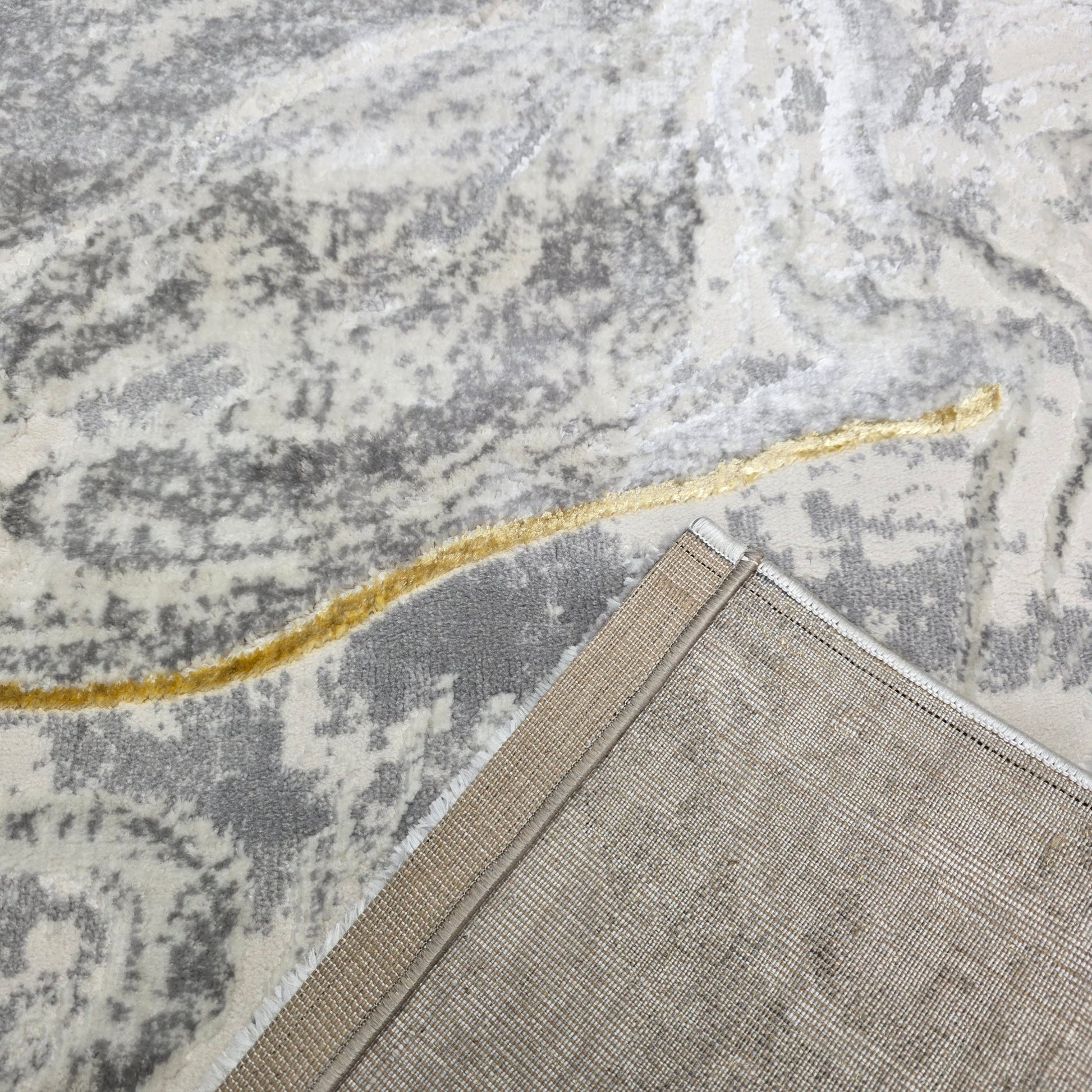 Alfombra Diseño Mármol Gris con Detalles Dorados – Estilo Moderno y Refinado