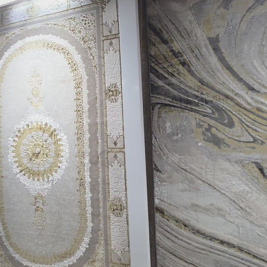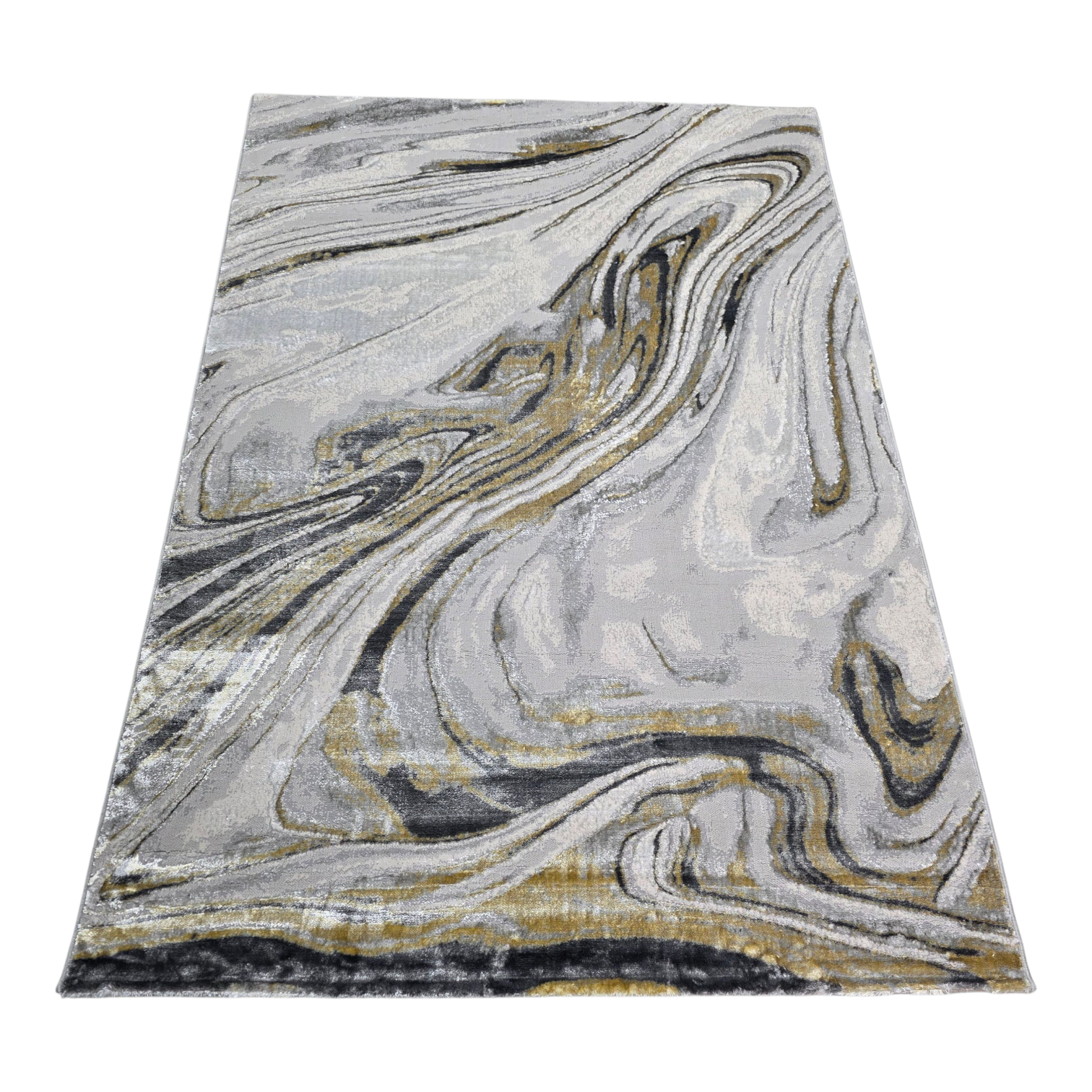 Alfombra Mármol Infinity Gris Oscuro / Dorado – Diseño Moderno con Vetas Elegantes