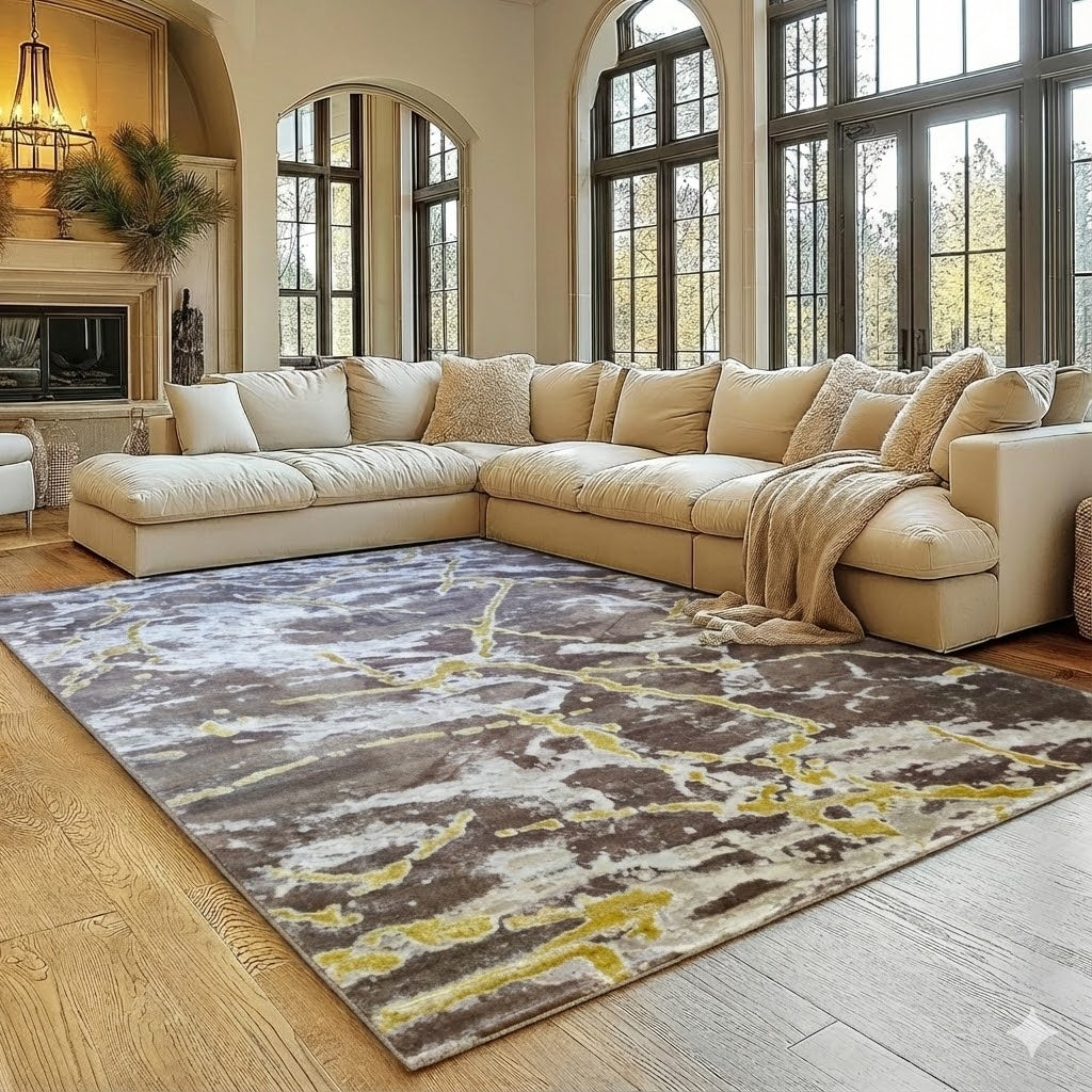 Alfombra Diseño Mármol Marrón con Detalles Dorados – Decoración Sofisticada y Cálida