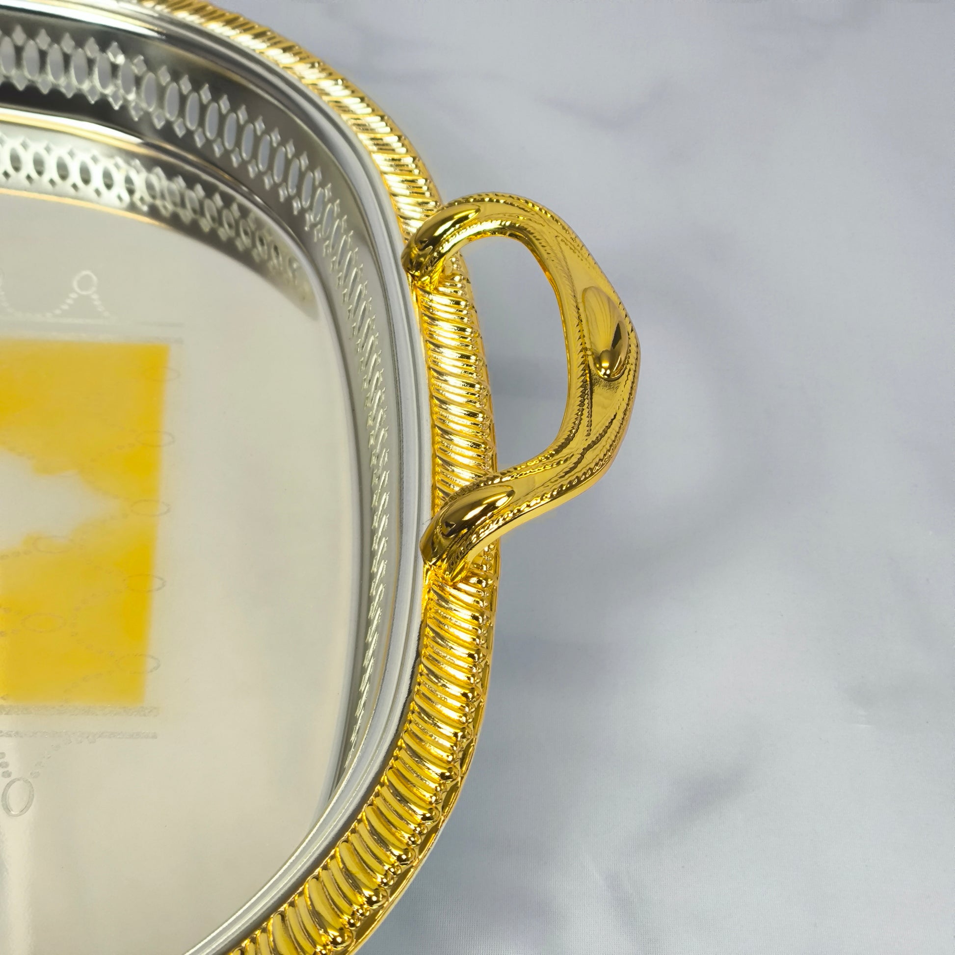 Bandeja Rectangular Plateada y Dorada con Asas – 55 x 40 cm | Bandeja Elegante para Servir y Decorar