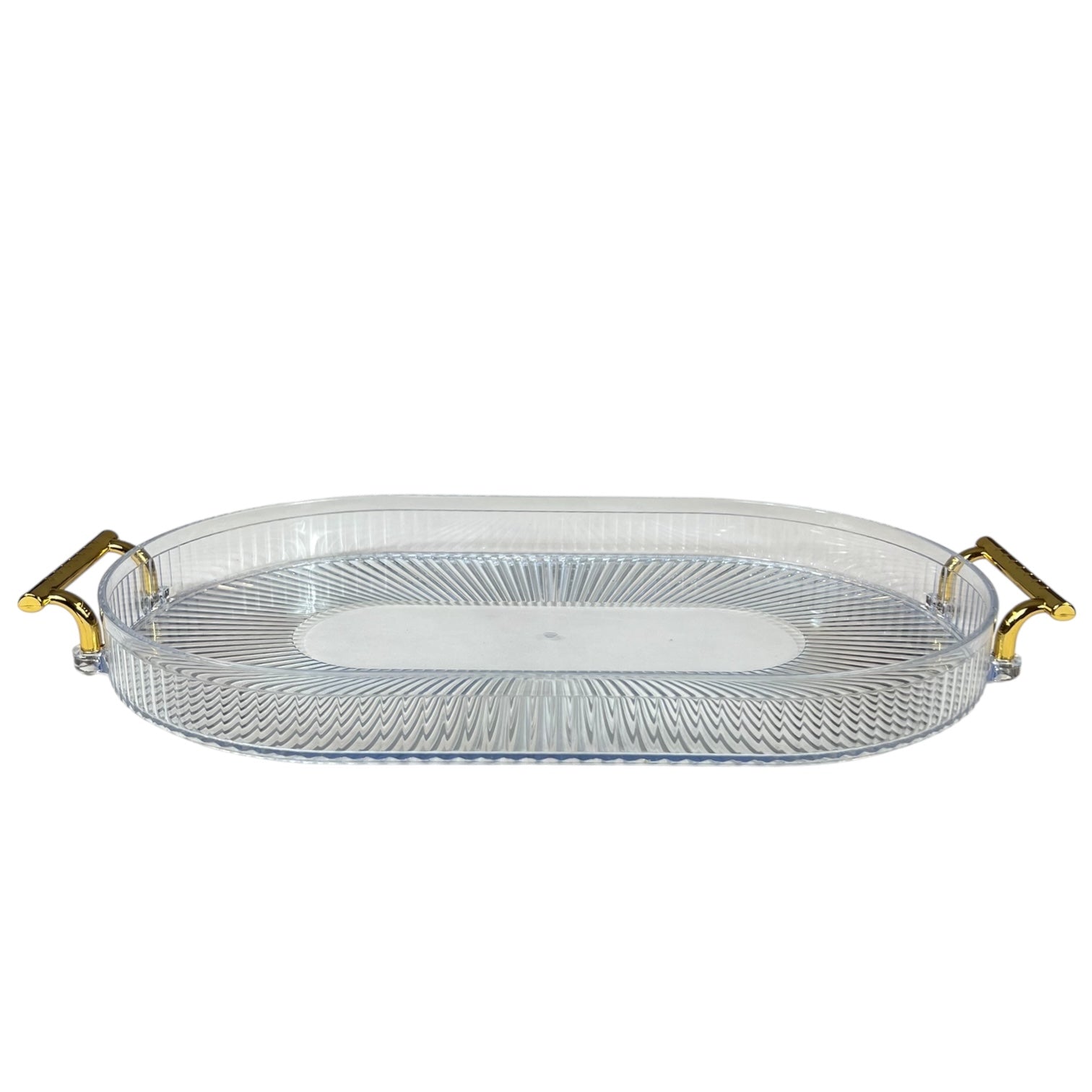 🟠 Bandeja ovalada Grande con Asas Doradas – Funcionalidad y Estilo en Uno- Plástico TRANSPARENTE