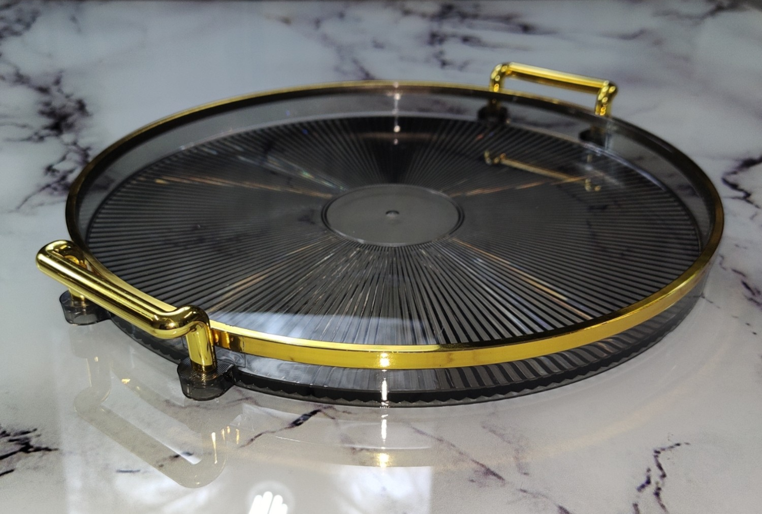 🟠 Bandeja Redonda con Asas Doradas – Elegancia para Servir o Decorar - Plástico NEGRO