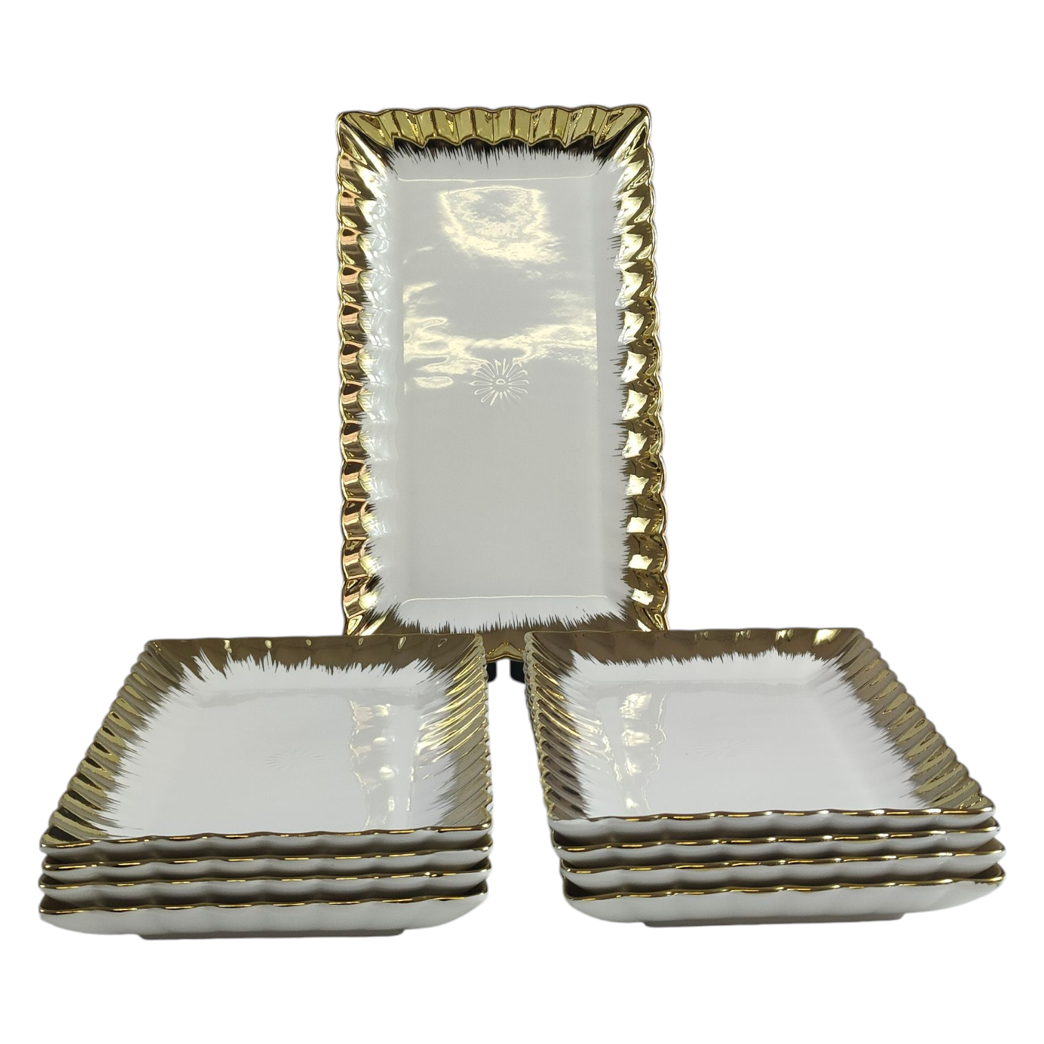 🥇 Set de 9 Platos Rectangulares con Borde Dorado 30cm x 17,5cm– Elegancia Clásica para tu Mesa