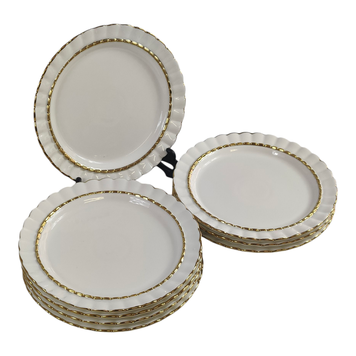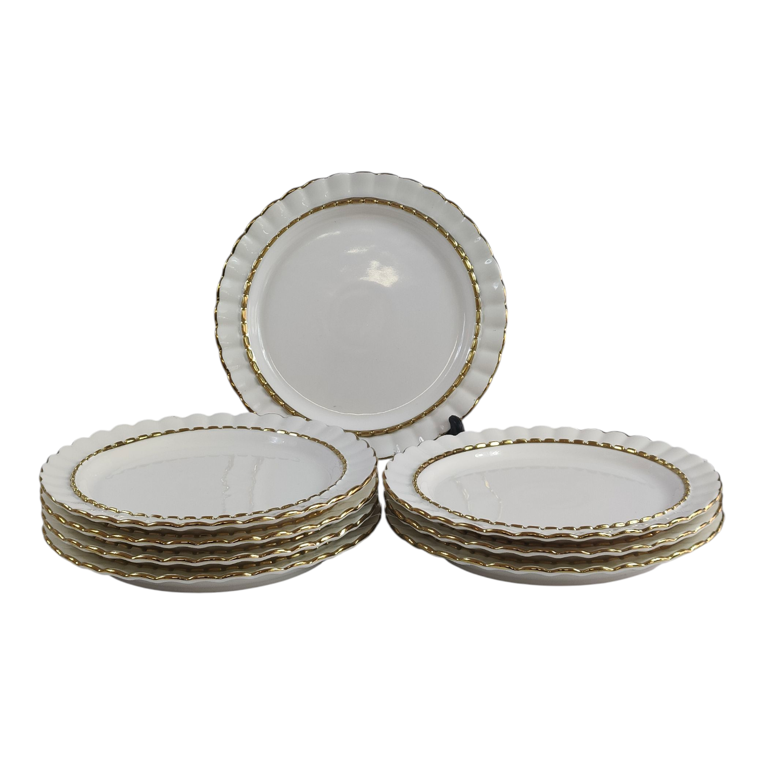 🍽️ Set de 8 Platos Llanos con Borde Dorado Ø20,9cm – Diseño Elegante y Ondulado