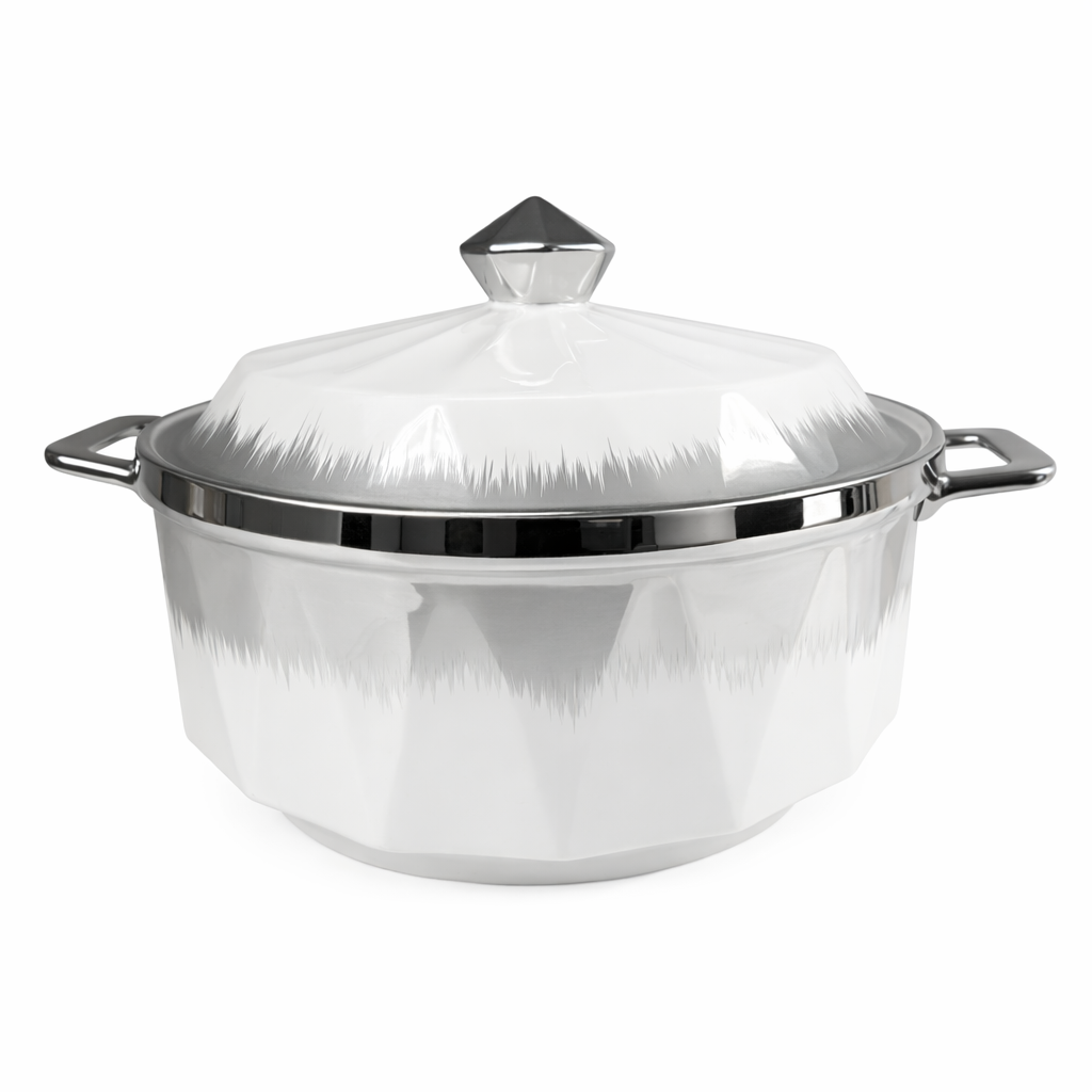 Cazuela de Porcelana Blanca con Tapa y Detalles Plateados 🍲✨ Diseño Moderno y Elegante 3L