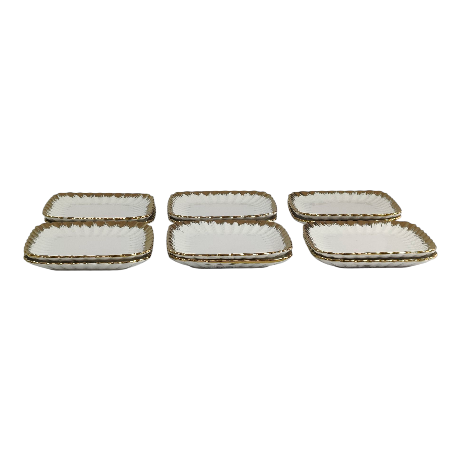 🏷️ Set de 12 Platos Cuadrados de Porcelana con Borde Dorado Elegante 14,9cm x 14,9cm