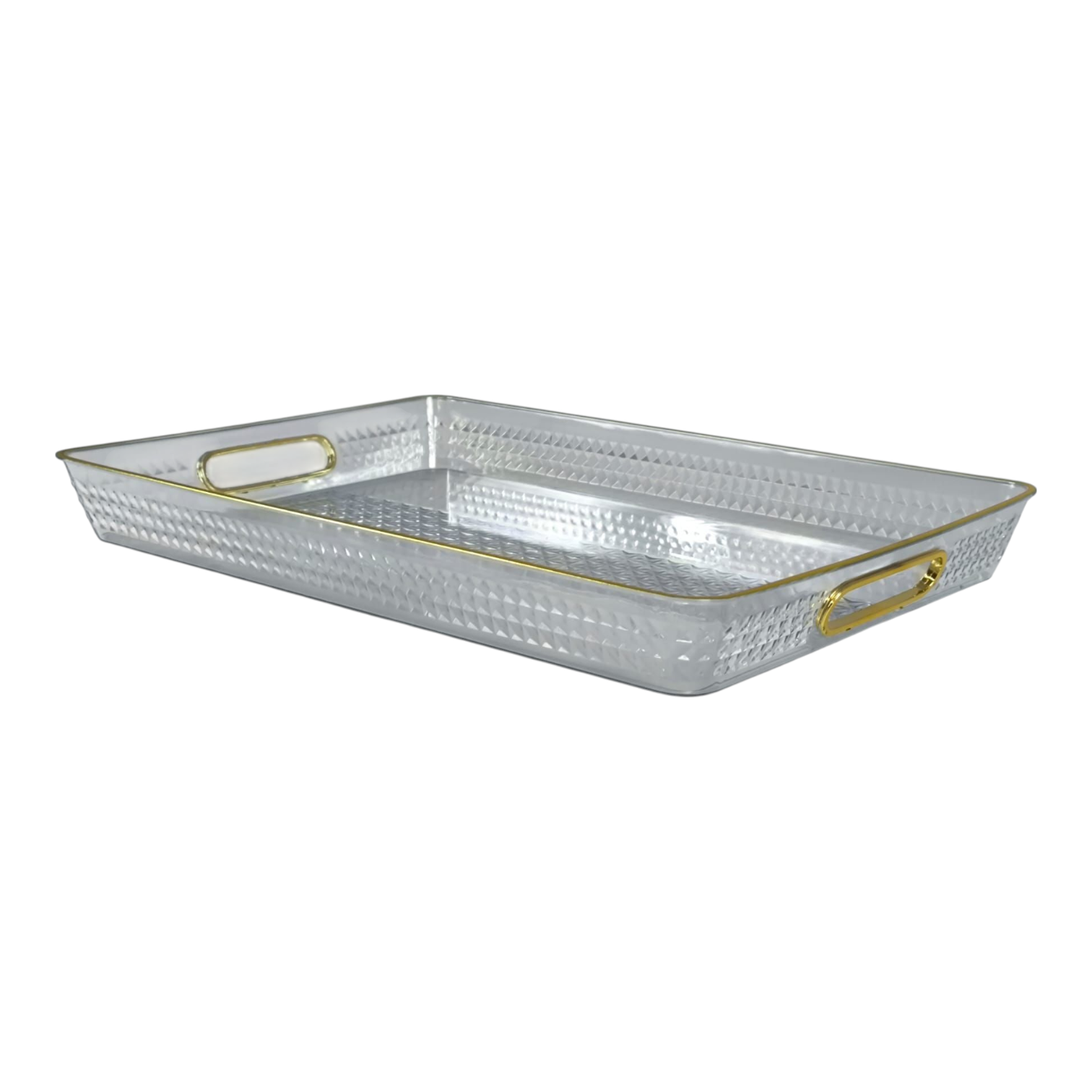 Bandeja Rectangular Transparente con Borde Dorado – Asa Dorada Elegante – Plástico Reforzado
