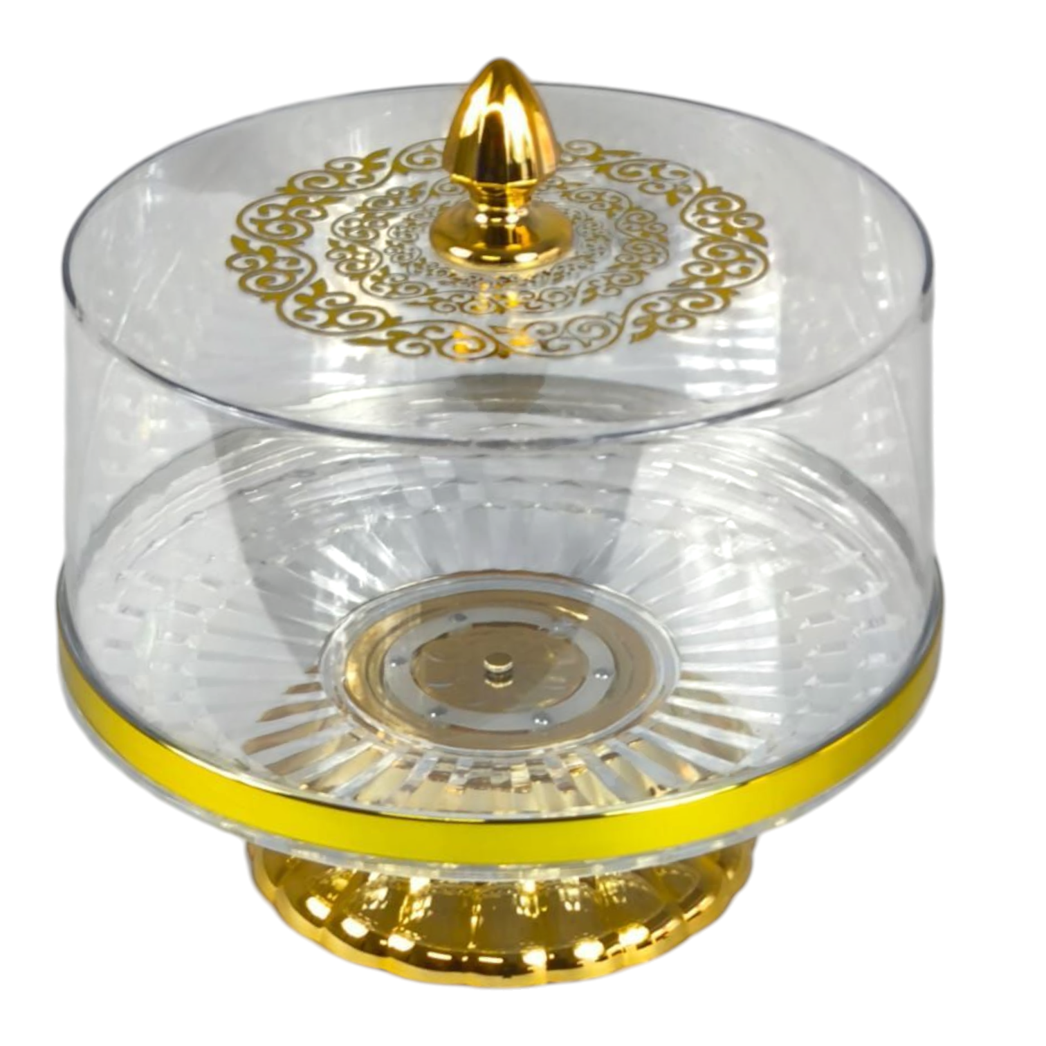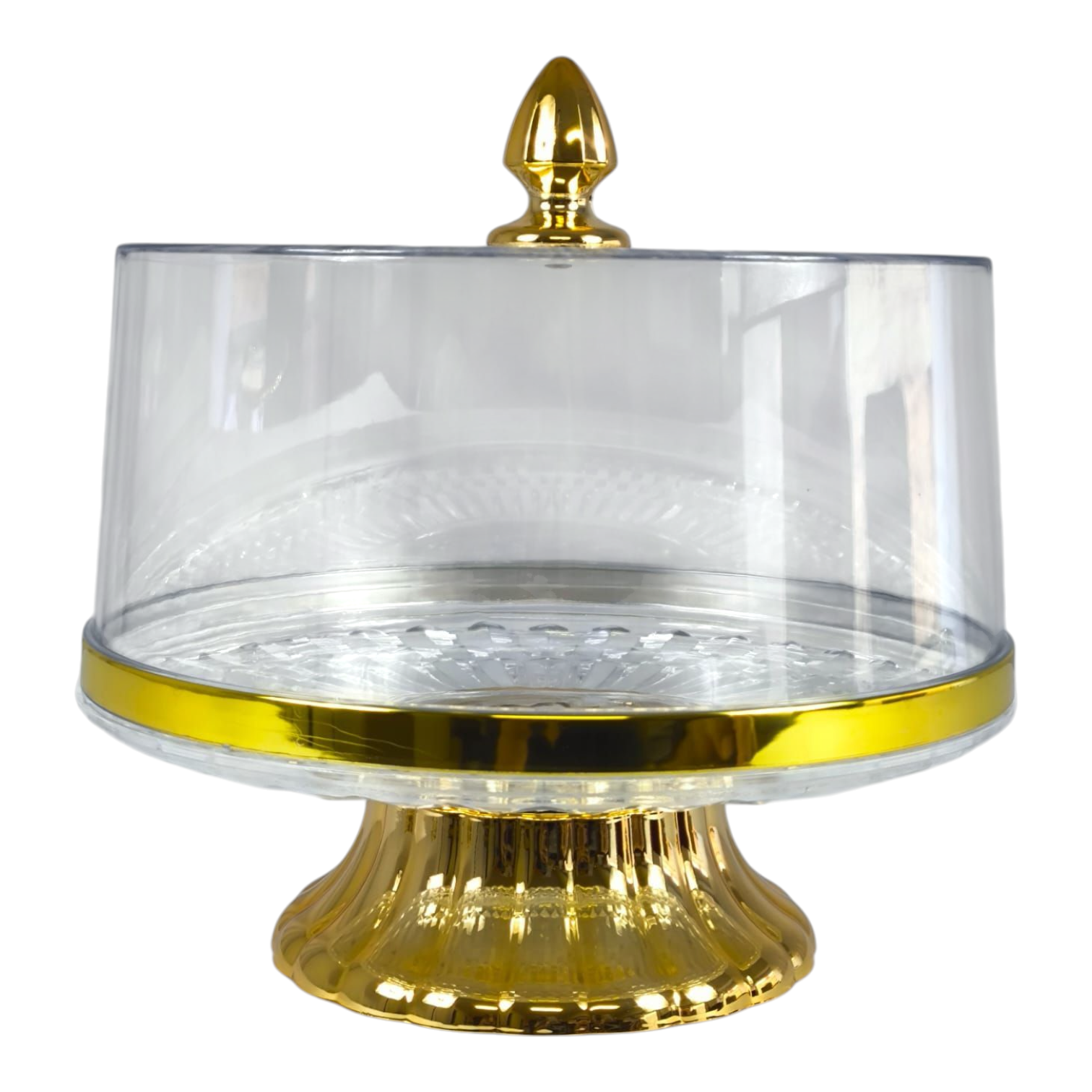 🍰 Expositor de Tartas con Tapa Transparente y Base Dorada – Elegancia para tus Postres ✨