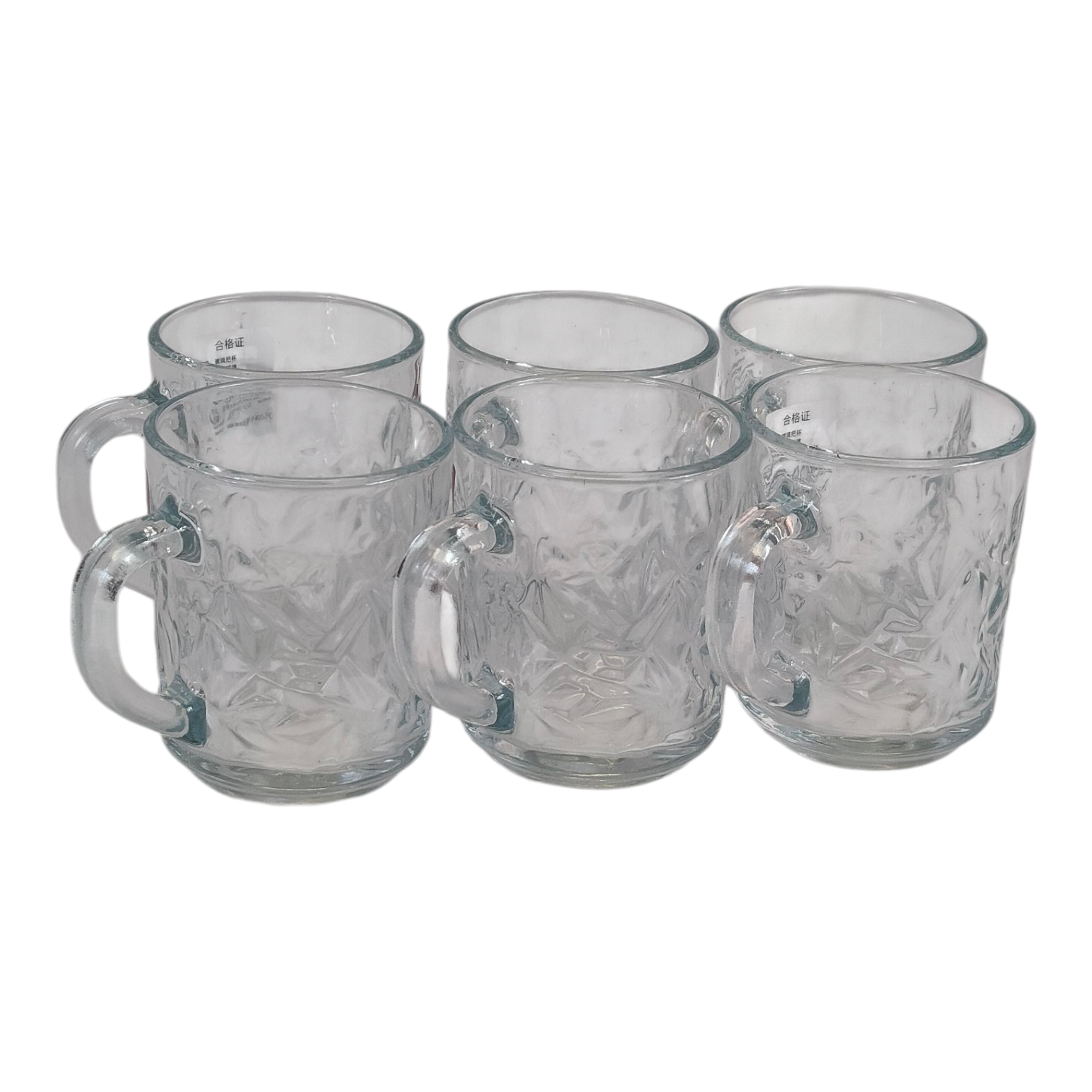 ✨ Set de 6 tazas elegantes fabricadas en cristal transparente con diseño en relieve.