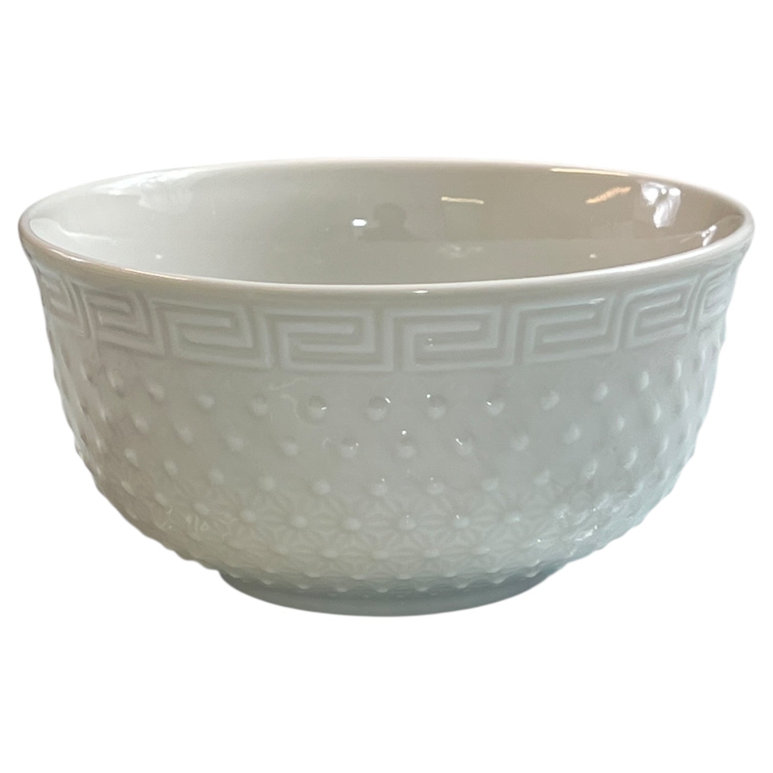 Dale un toque de distinción a tu mesa con este cuenco de cerámica blanca con detalles en relieve. Ideal para servir sopas, cereales, postres o acompañamientos, combina elegancia clásica y funcionalidad moderna.
