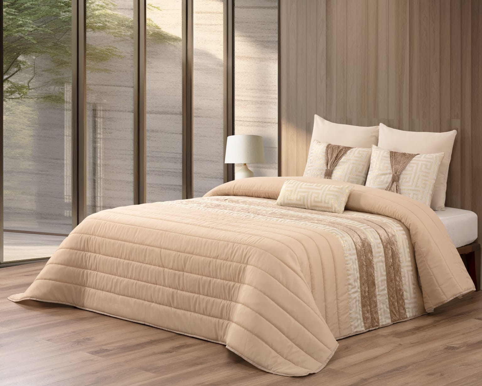 Colcha Decorativa JESSICA con Relleno Elegante y 2 Almohadas, Ideal para Todas las Estaciones, medida 250 x 260 - COLOR BEIG