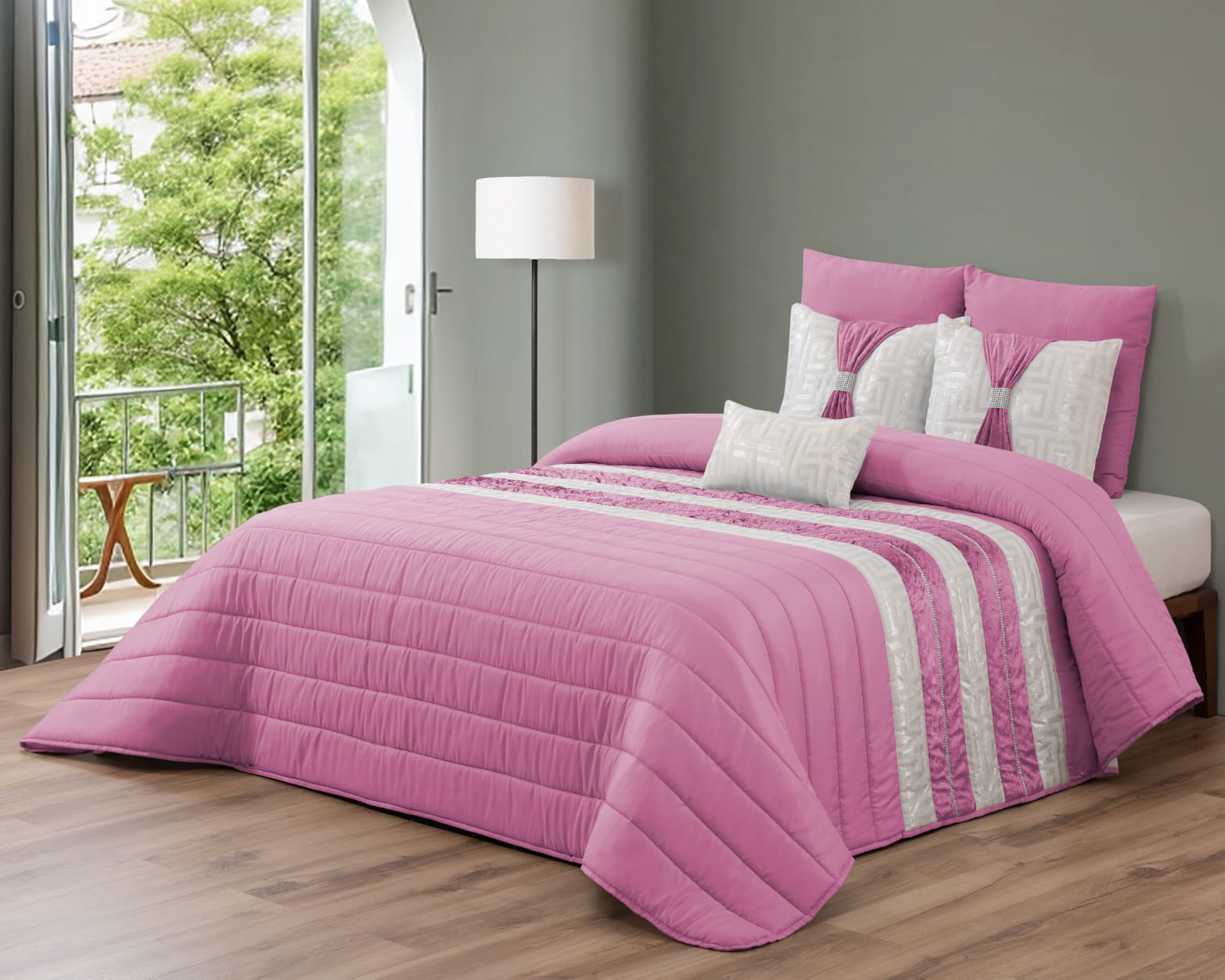 Colcha Decorativa JESSICA con Relleno Elegante y 2 Almohadas, Ideal para Todas las Estaciones, medida 250 x 260 - COLOR ROSA