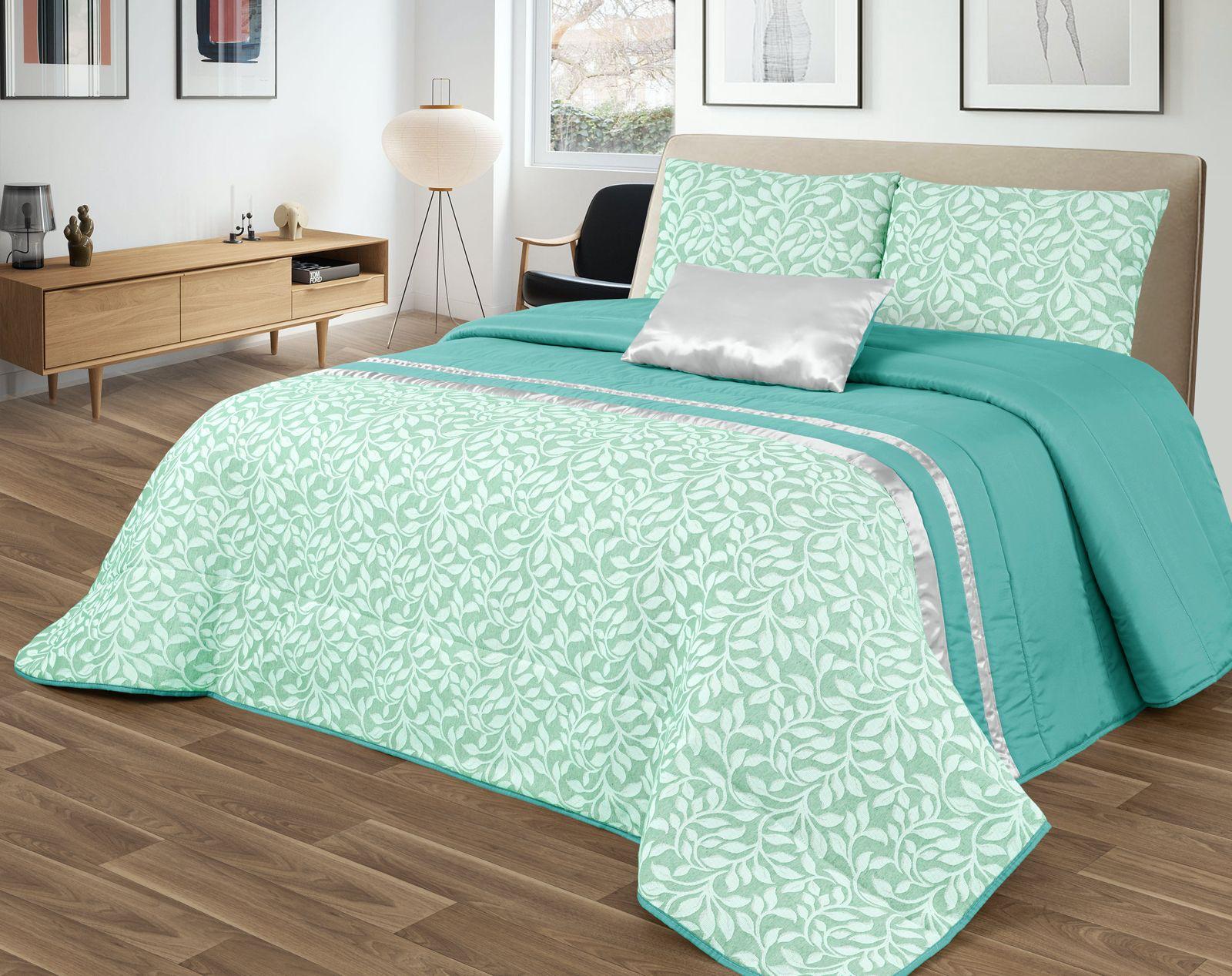Colcha GOOLD Elegante – Conjunto Decorativo con Dos Almohadas, 250 x 260 cm - COLOR VERDE CON DETALLES EN PLATA