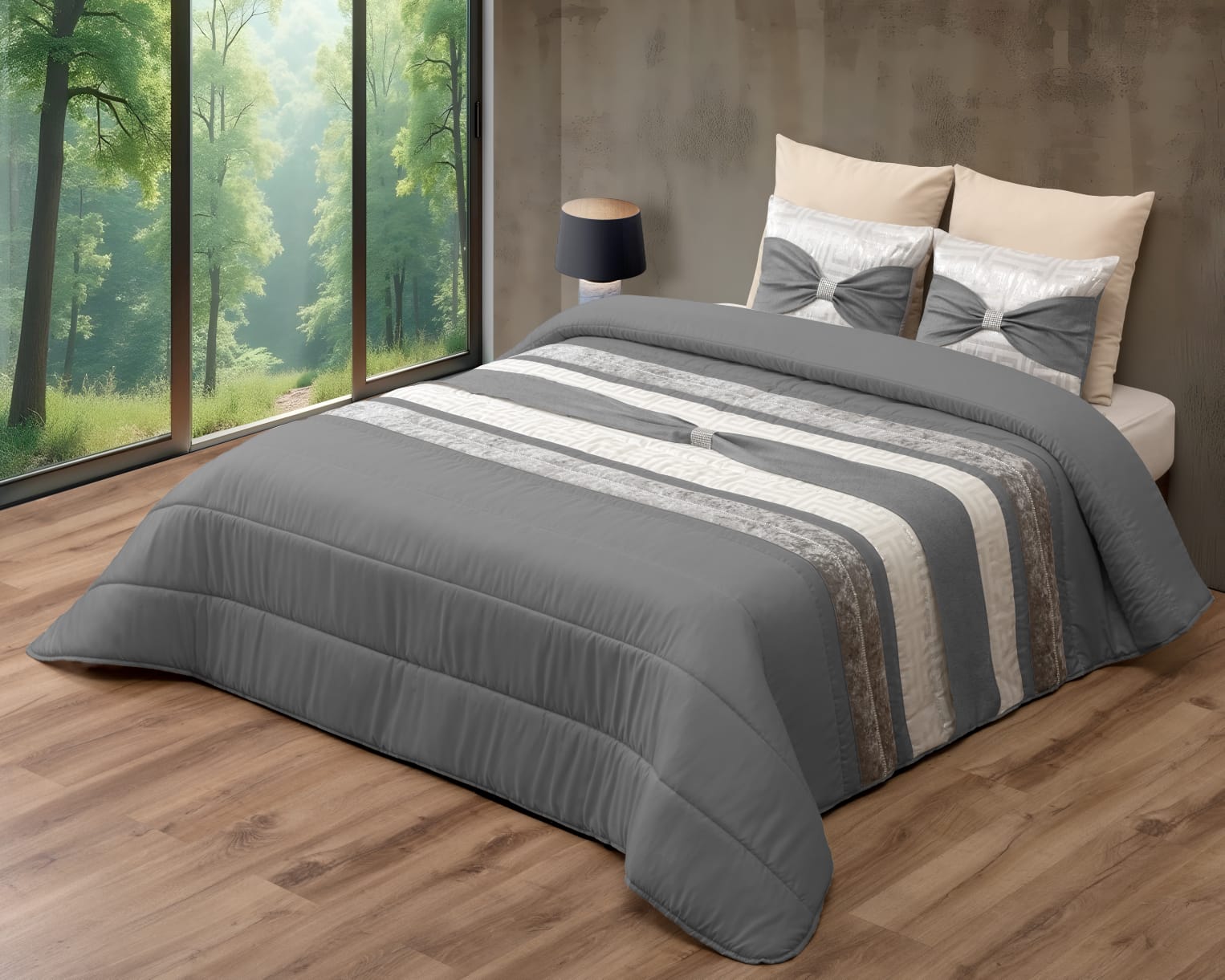 Colcha JENNY Elegante – Conjunto Decorativo con Dos Almohadas - COLOR GRIS OSCURO