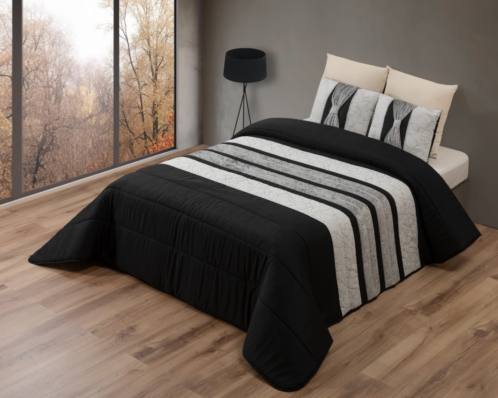 Colcha SOFIA Elegante – Conjunto Decorativo con Tres Almohadas, 250 x 260 cm - COLOR NEGRO
