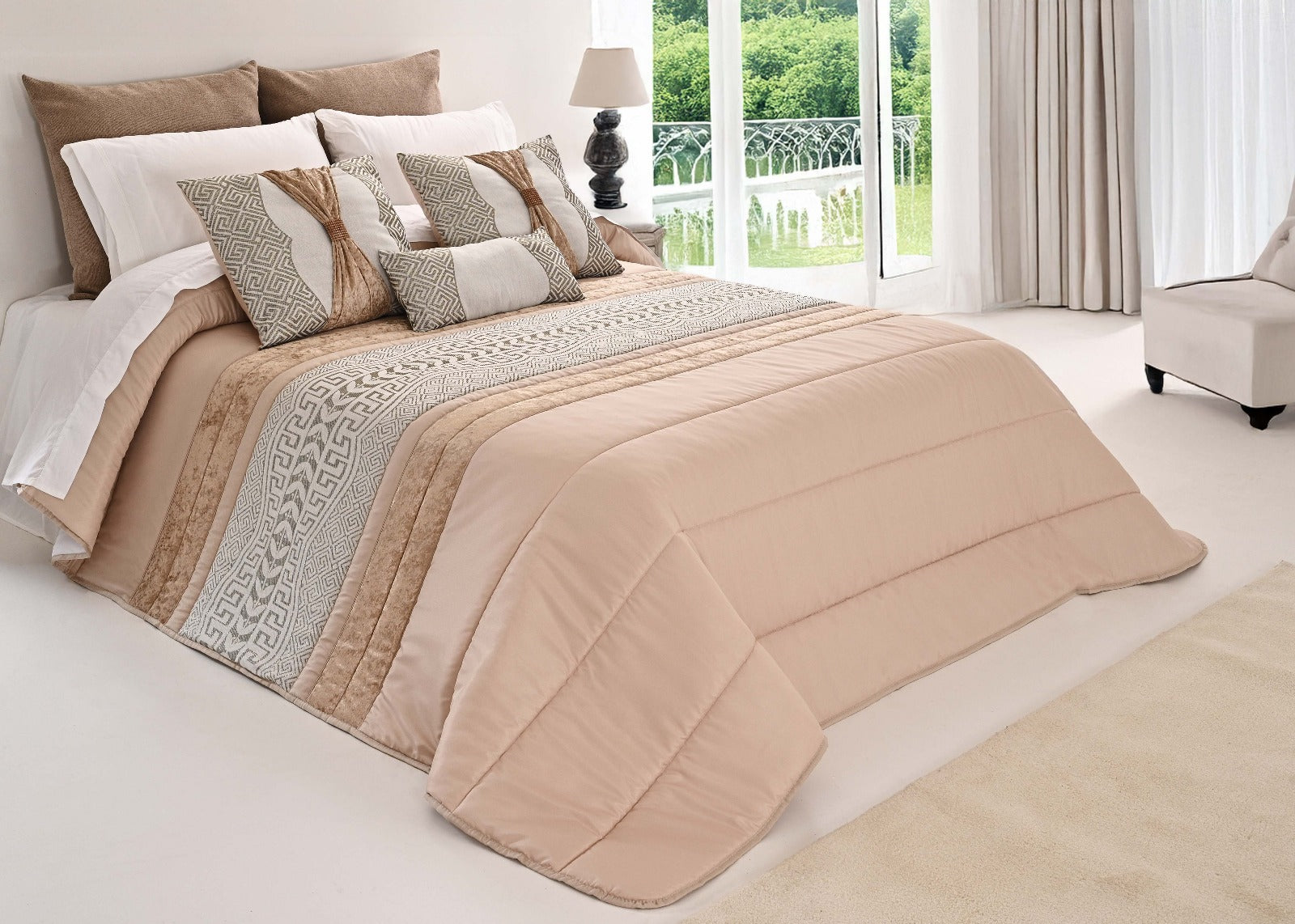 Colcha SUZY Elegante – Conjunto Decorativo con Tres Almohadas, 250 x 260 cm - COLOR BEIG