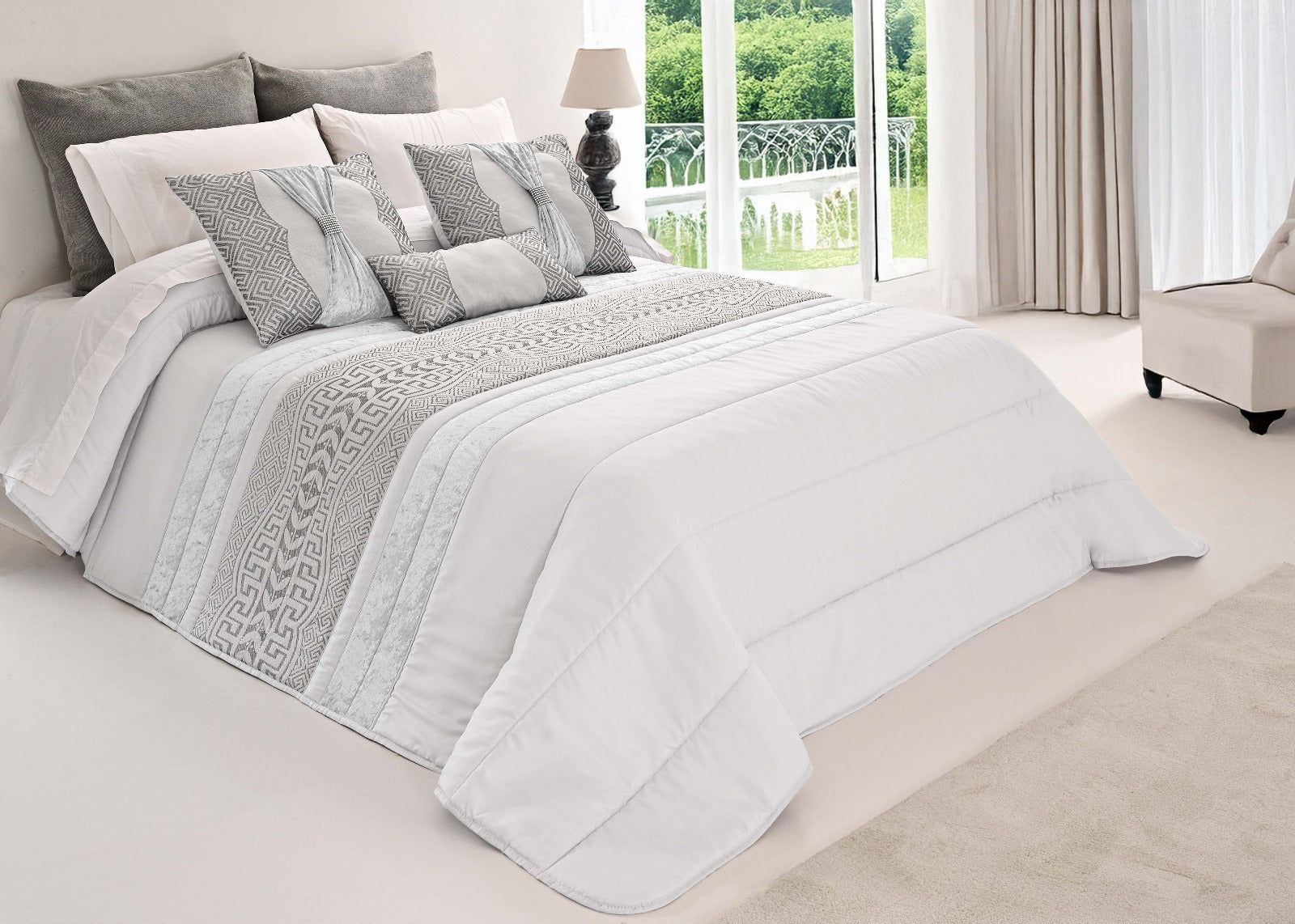 Colcha SUZY Elegante – Conjunto Decorativo con Tres Almohadas, 250 x 260 cm - COLOR BLANCO