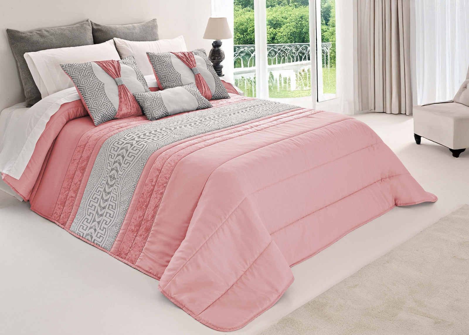 Colcha SUZY Elegante – Conjunto Decorativo con Tres Almohadas, 250 x 260 cm - COLOR ROSA