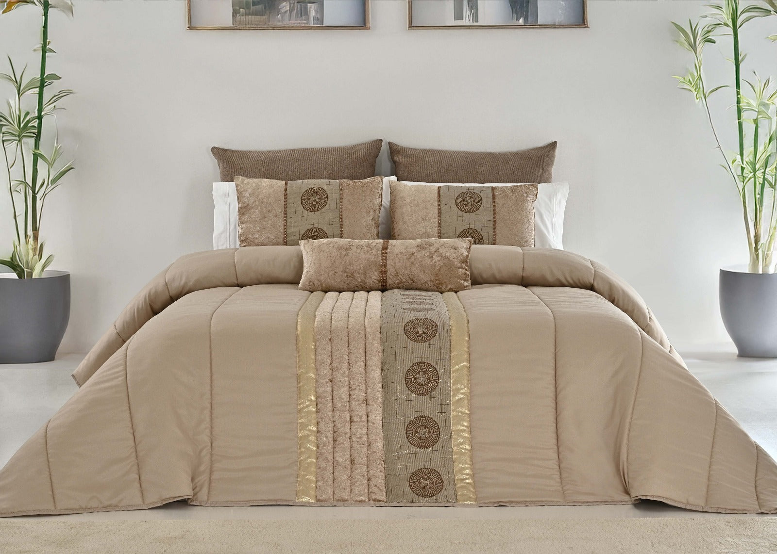 🏯 Colcha TOQUIO Elegante – Conjunto Decorativo con Tres Almohadas, 250 x 260 cm - COLOR BEIG