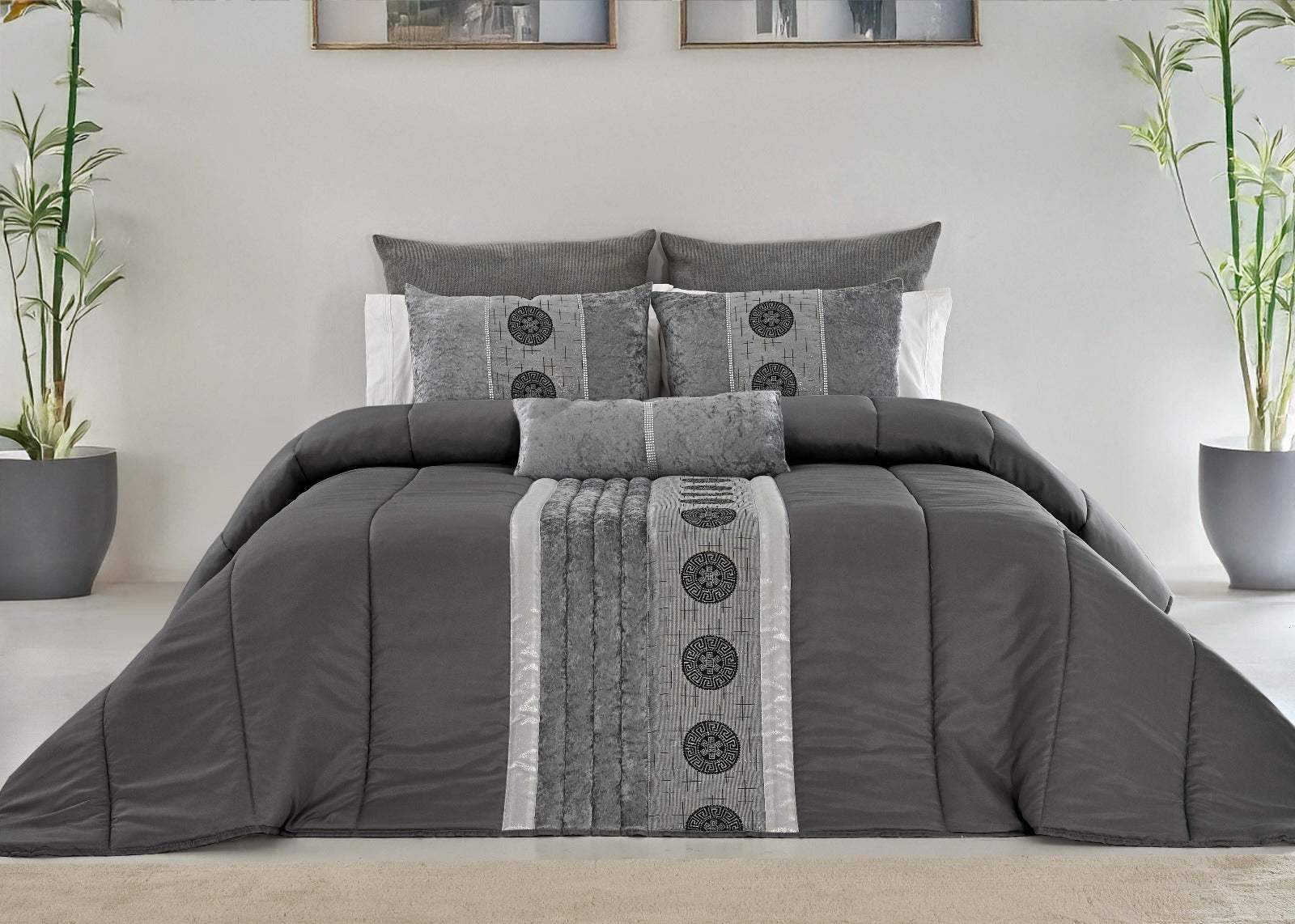 🏯 Colcha TOQUIO Elegante – Conjunto Decorativo con Tres Almohadas, 250 x 260 cm - COLOR GRIS OSCURO